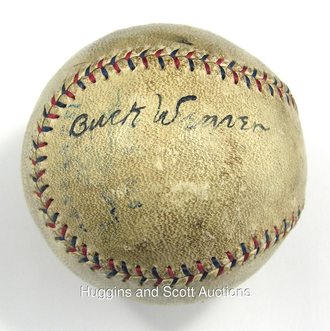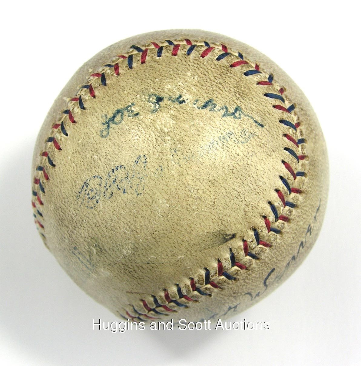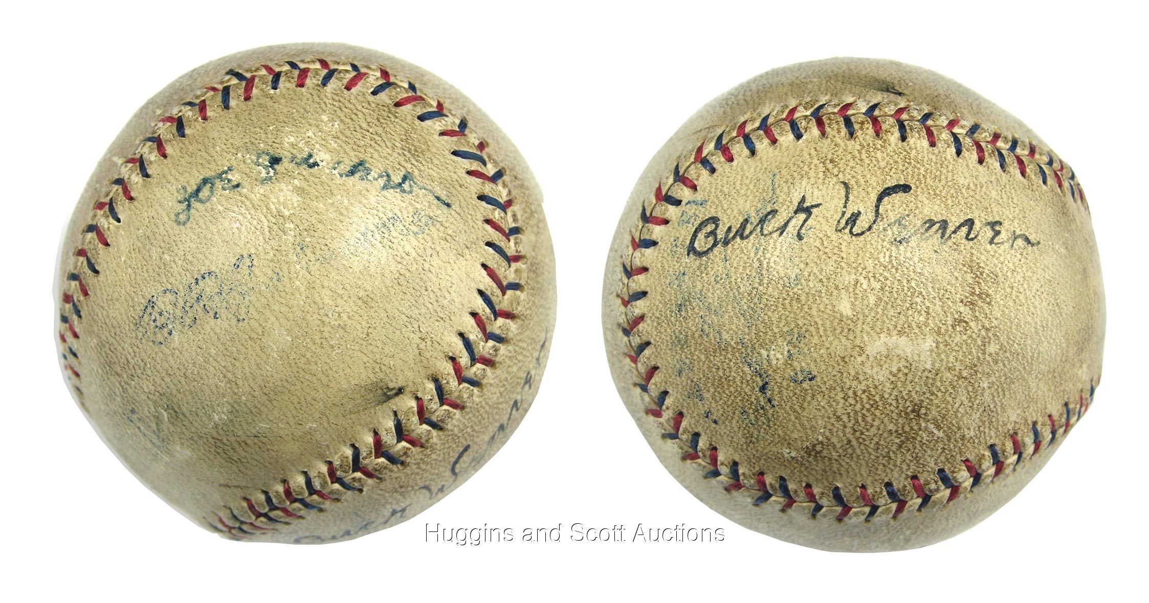 Few names in baseball inspire quite like Shoeless Joe Jackson. The legend of his deeds on the field aroused comparisons to Ty Cobb during his playing days. F. Scott Fitzgerald wrote of his misdeeds in the classic The Great Gatsby as did Eliot Asinof in Eight Men Out. The presented OAL Ban Johnson baseball features just two signatures - Joe Jackson (d.1951) and Buck Weaver (d.1956). The statistics suggest that neither man actually “threw” any games at the plate, as Jackson hit .375 and Weaver hit .324, the two highest batting averages for starters on the 1919 Chicago White Sox during the Series. Both men contended they were innocent and tried for years to get back into the game they so loved. The all-important Joe Jackson signature is positioned on the south panel in blue ink directly above the Ban Johnson stamp and grades a (“5”) in strength and clarity. The “Jac” in Jackson is slightly obscured but the overall presentation of the signature is stellar. The Buck Weaver script is on the east panel in black ink and is superb, grading a (“7”) with only a minor smudge on the first “e” in Weaver. The ball is uniformly toned with minor abrasions present. Both signatures display as singles, but it is the Jackson that will draw the majority of the attention. This magnificent sphere was most likely signed during the 1920 season and features the signatures of the two most likable figures in the dirty scandal that gave rise to the Black Sox reference. The incredible baseball comes with a full LOA from JSA.