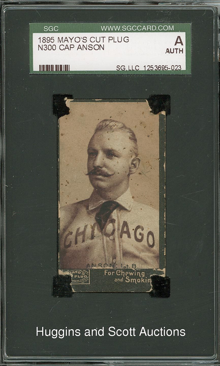 Graded as Authentic by SGC. Offered is an 1895 Mayo’s Cut Plug Cap Anson. This pitch-black antiquity is missing each of its corners and reveals a surface crease. Despite these flaws, this bona fide Hall of Famer item is an affordable alternative to much pricier mid-grade examples.