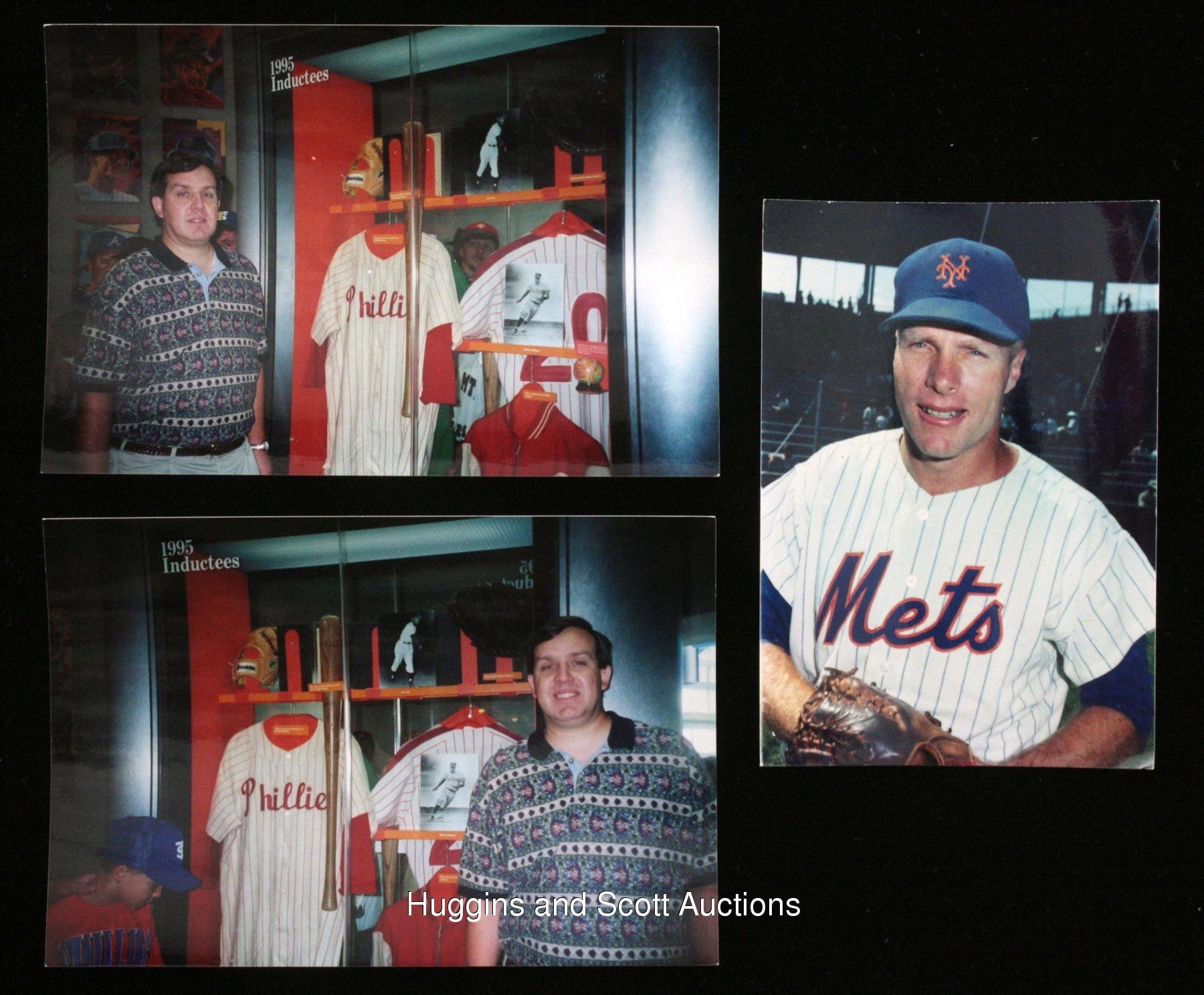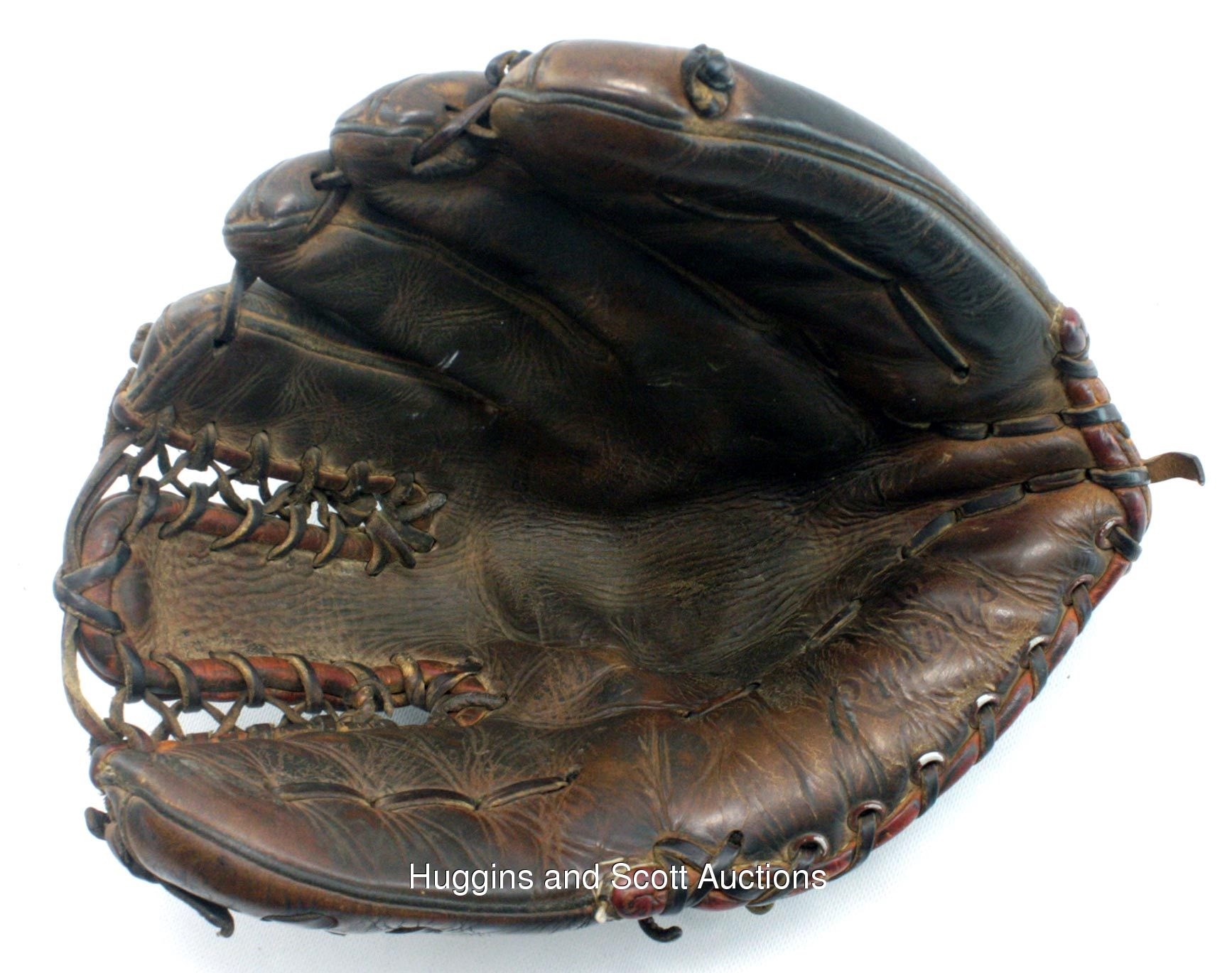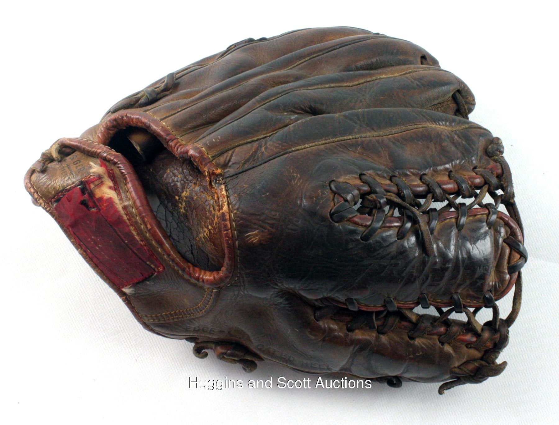 Richie Ashburn is considered one of the best defensive outfielders of the 1950s as well as one of the best leadoff hitters of all-time. Offered is a genuine rarity for collectors, a 1962 Richie Ashburn game-used Rawlings baseball glove. To describe this magnificent piece as museum quality is an understatement because it has already been on display at the highest level – this glove was in the 1995 Hall of Fame Induction display for over a year between 1995 and 1996. It is hard to imagine how Ashburn used such a small glove to shag so many fly balls, but this Rawlings TG15 model glove is the real deal. Heavy use is present, as is a vintage replacement of the leather straps from Ashburn's playing days. Most game-used gloves are often re-threaded by the players or equipment managers to tighten the pocket after years of wear. The artifact comes with solid provenance including a letter from the Baseball Hall of Fame (returning the glove to the man who loaned it for display), (2) photographs of Ashburn wearing the glove during his playing days (one with the Cubs and one with the Mets), (2) 4x6 photographs of the glove on display at the Hall of Fame, a notarized letter from an auction house that first sold the piece and a letter from renowned collector Paul Hill describing how he first obtained the relic (see our website for further details from this letter). Unlike game-used bats, dozens of which are used within a single-season, gloves are treasured by the men who wear them and usually used for many years. This is an incredible opportunity to obtain a rarity in the collector’s world, a Hall of Famer’s game-used glove with clear provenance. The letter from Paul Hill discusses how he met Richie Ashburn in late 1963. Ashburn was throwing batting practice for the Phillies (he was working for the club as an announcer) after he had retired in 1962. A young Paul Hill asked Ashburn for something for his collection and Ashburn handed him the glove. The full letter is scanned below and you can read it in its entirety.Richie Ashburn owns six of the top ten seasons with the most putouts by an outfielder in Major League history and most likely used this glove during some of these seasons.