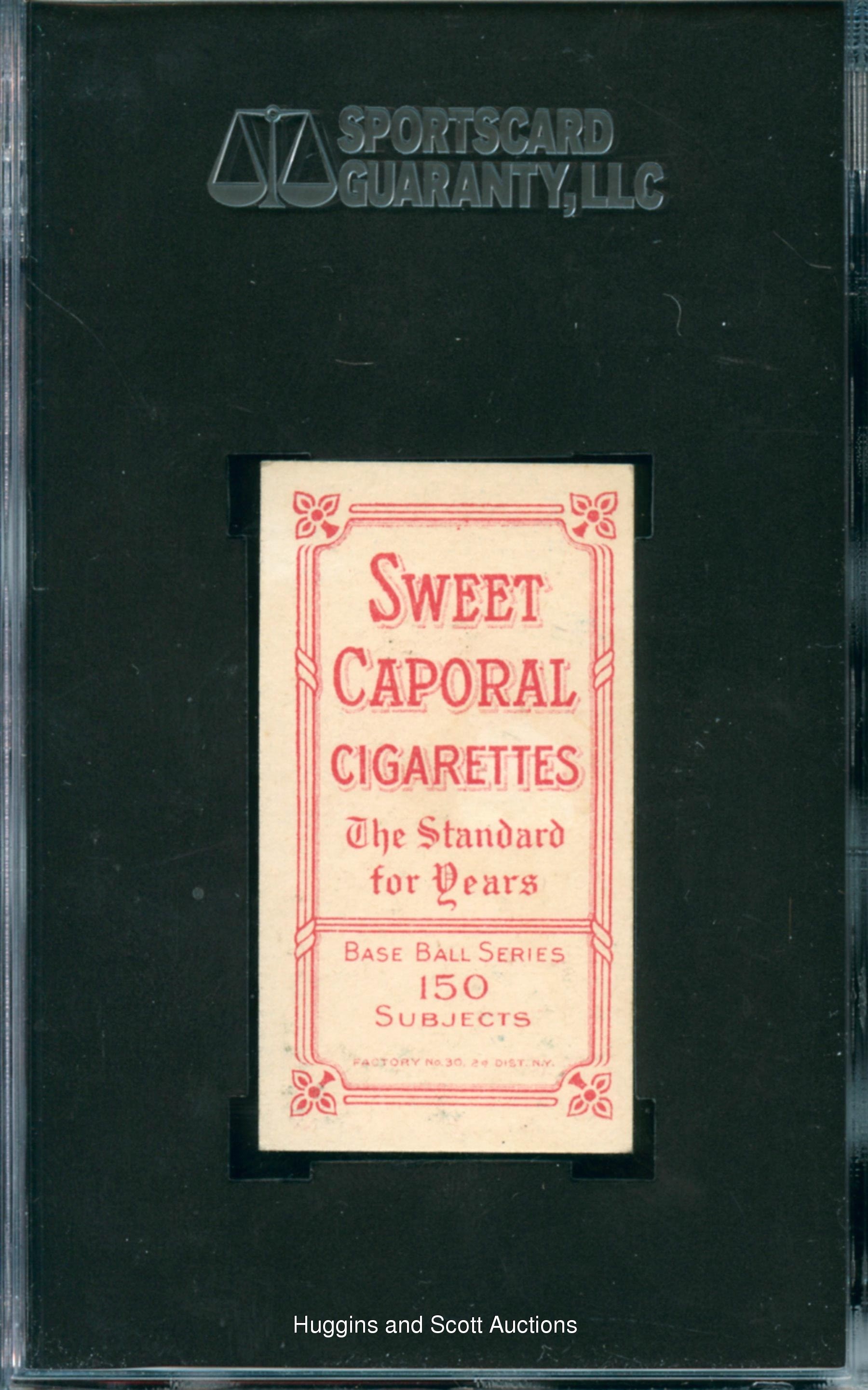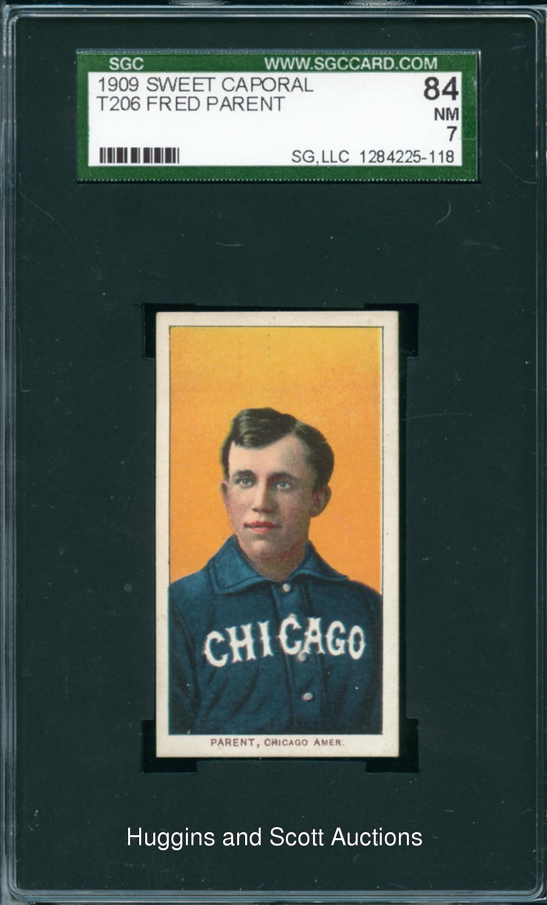 Low Pop T206 collectors - pay attention here! Graded 84 NM 7 by SGC. Featured is an elite 1909-11 T206 White Borders Fred Parent sample. Creamy edges, razor-sharp corners, precise centering and a clean Sweet Caporal advertising back frame the portrait of this reliable infielder. According to the SGC census, this portrait shares the grading tier with two other examples with none better. Additionally, PSA has reported one example at the NM tier with only a single example grading higher.