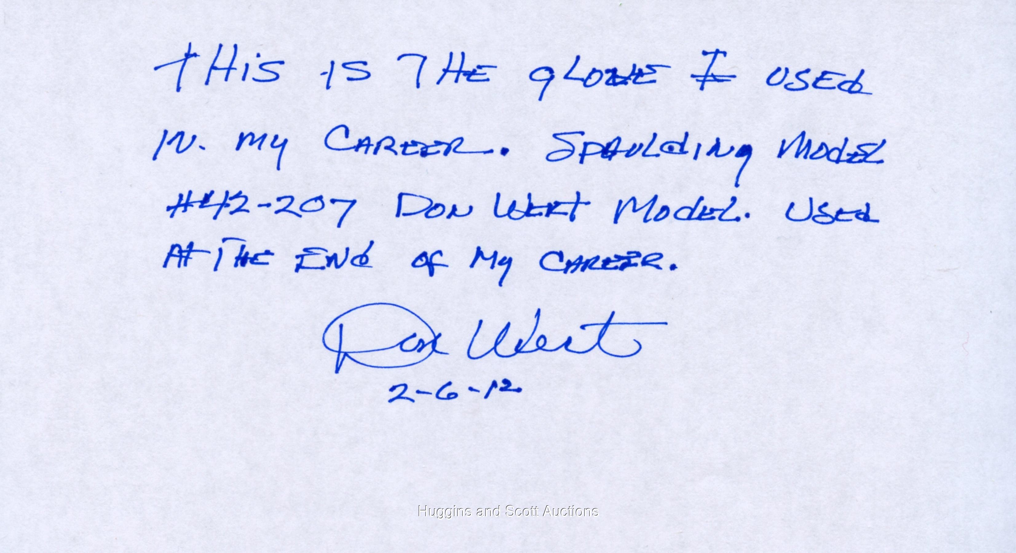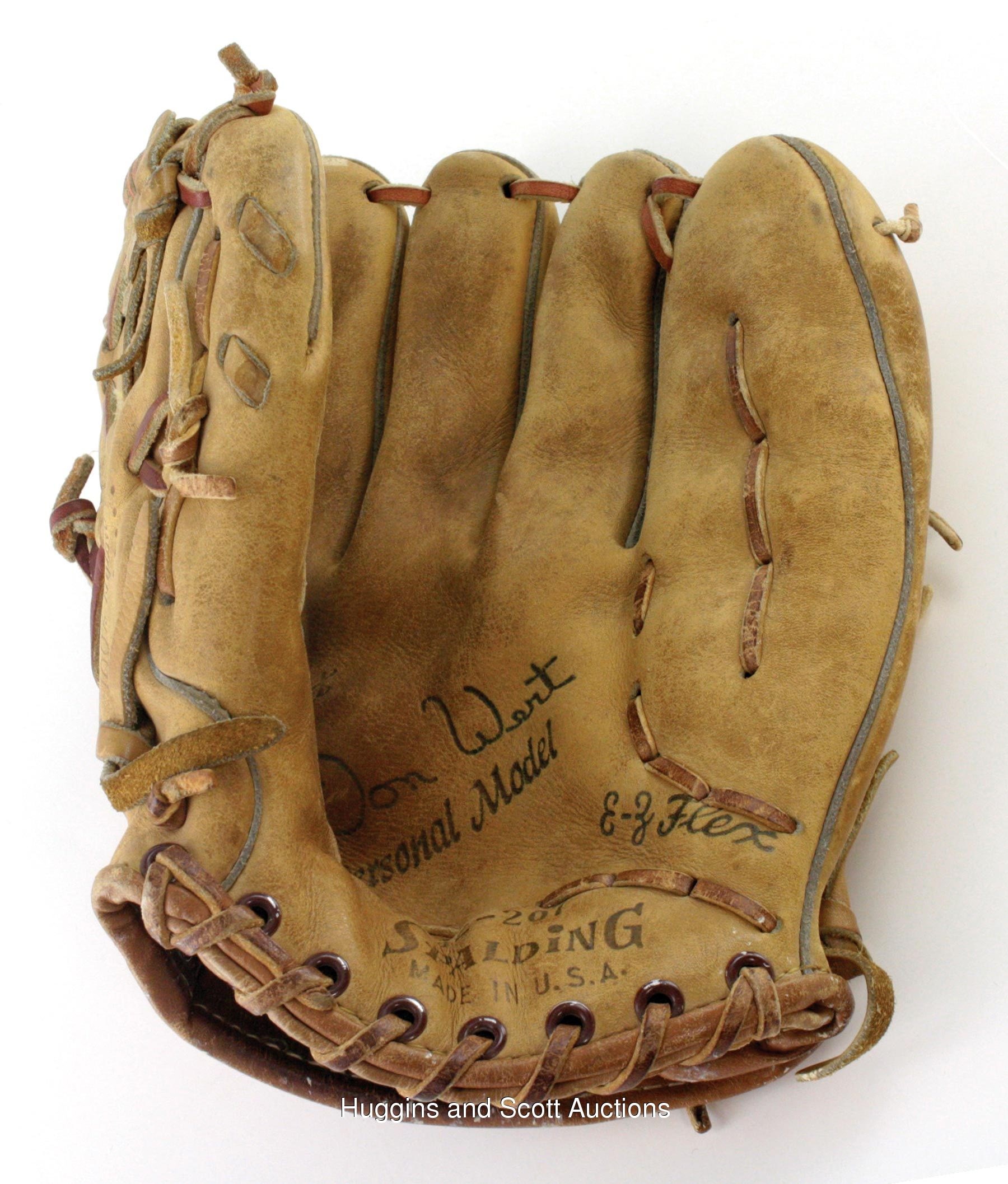 Quick: who was the greatest defensive third baseman throughout the 1960s? Well, we can't fault you for saying "Brooks," but you may also have an argument with Don Wert. That's right, Don Wert, whose 1965 league-best .976 fielding percentage marked the only season during the entire decade that somebody other than Robinson led the league. As he manned the hot corner during his nine-year Major League career, Wert used this Spalding “42-207” signature model fielder’s glove to rank among the best at his position. The right-handed leather item shows solid game use with wear about the pocket and cracking on the palm area. LOA from Don Wert.Note: the winning bidder has the option of having this item autographed (with choice of personalization/inscription, if wanted) by Wert at no extra cost.