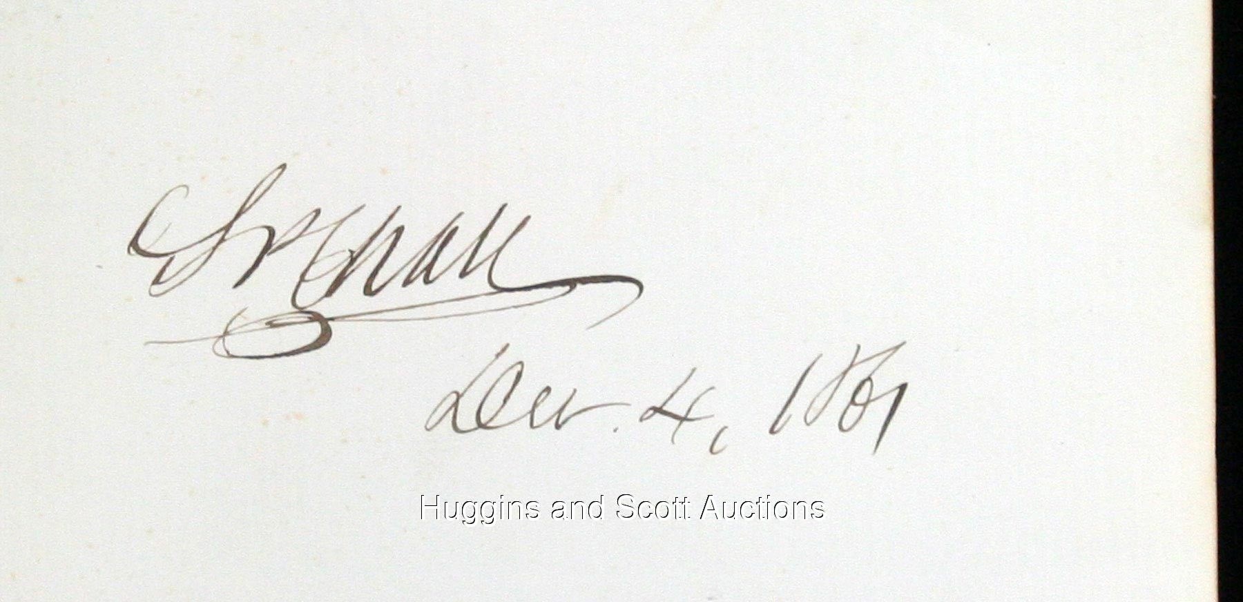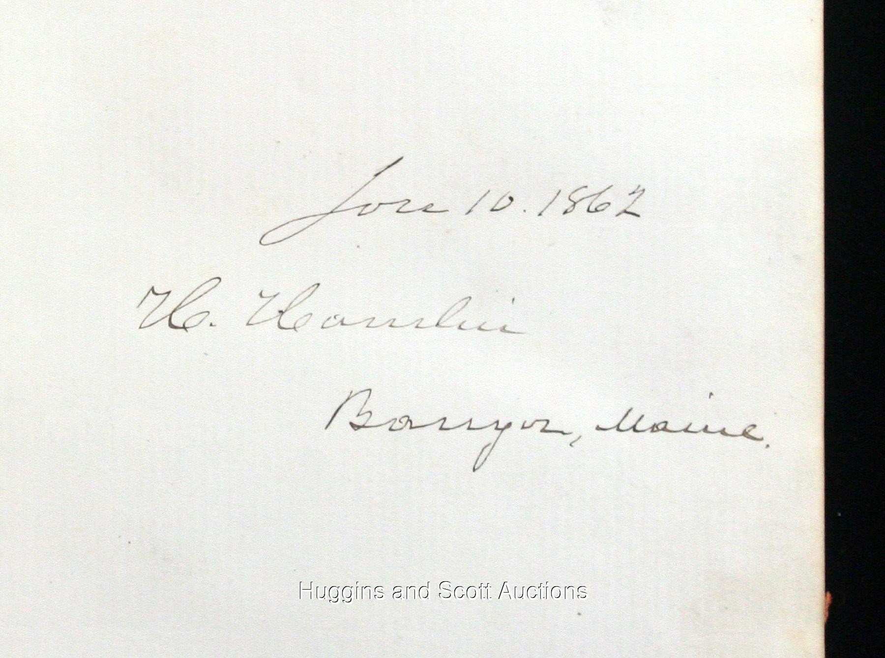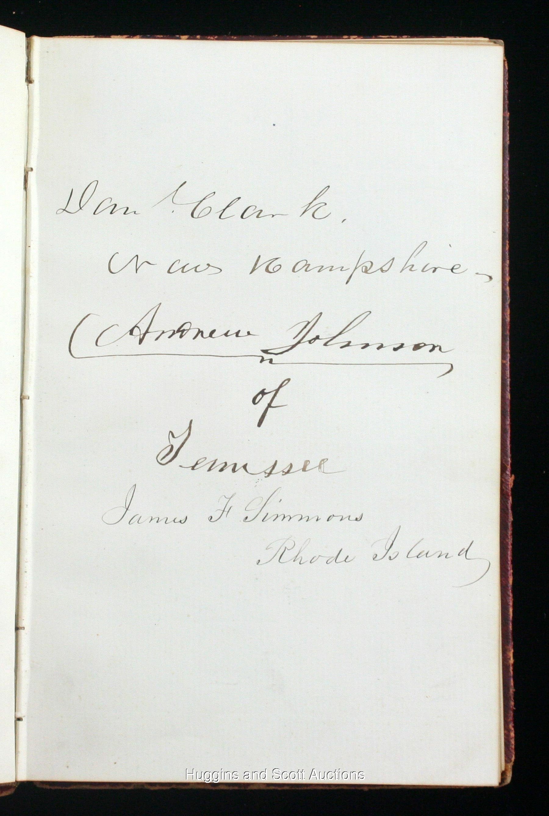 A house divided against itself cannot stand. I believe this government cannot endure, permanently, half slave and half free. I do not expect the Union to be dissolved — I do not expect the house to fall — but I do expect it will cease to be divided. It will become all one thing or all the other. Either the opponents of slavery will arrest the further spread of it, and place it where the public mind shall rest in the belief that it is in the course of ultimate extinction; or its advocates will push it forward, till it shall become alike lawful in all the States, old as well as new — North as well as South. - Abraham Lincoln, June 16, 1858Arguably the most influential President in American history, Abraham Lincoln was a polarizing figure from the moment he made his House Divided speech in June of 1858. For the abolitionists and anti-slavery citizens, Lincoln was a hero. Southerners and pro-slavery men seemed to have a much different opinion about him. Lincoln’s election two years later forced the hand of Southern states toward secession. If Lincoln is the most influential President, the 37th Congress has to be considered one of the most influential assemblies in American history. The debate over slavery, states’ rights and the perseveration of the Union were common occurrences in the unfinished Capitol chamber. These men, alongside Lincoln, held together our Nation during the Civil War. The presented 5-3/4 x 9" autograph album is the most complete accumulation of signatures from these men ever offered. Contained with the pages of the hard-covered album are (224) autographs that include – in order – President Abraham Lincoln (“8”), VP Hannibal Hamlin (“7”), William Seward, Salmon Chase, Edward Bates, Simon Cameron, Gideon Welles and Caleb Smith. Each of these signatures and on a page by itself and constitute the key members of the Cabinet. The person that obtained these autographs should be considered a pioneer in autograph collecting as the original owner meticulously gathered the autographs in order of importance with Lincoln first, followed by Hamlin, the Cabinets members, then the Senators and lastly the members of the House of Representatives. The autograph album can be dated between December, 1861 and February of 1862 by following the members of Congress and when they took office. There are a total of (224) signatures, eight are Lincoln and his Cabinet, (42) are senators (out of 50 possible at the time) including Henry Wilson (VP under US Grant) and Andrew Johnson (17th President of US); (170) of the (180) Representatives (there are 2 duplicate signatures) including William Wheeler (VP under R. Hayes) and Schuyler Colfax (VP under A. Johnson). All signatures were penned in black ink and are in incredible condition (ranging from “7-9”). Full photo LOA's from JSA and PSA/DNA. For a complete list of all (224) signatures and more information on each, please visit our website.Note: The Abe Lincoln autograph has January 28, 1862 added was the same day that he issued General Order #1 to advance all land and sea forces to his Generals. Grant obliged in the West, while McClellan did nothing. List, in order, of signatures (inscriptions in parenthesis): Abraham Lincoln signed as President (Washington, DC January 28, 1862, Yours Truly, grade “8”) Hannibal Hamlin signed as Vice President (June 10, 1862, grade (“7”)William H. Seward signed as Secretary of State (Auburn, grade “8”)Salmon P. Chase signed “S P Chase” as Secretary of the Treasury (Dec. 4, 1861, grade “7”) Edward Bates signed as Attorney General (of St Louis, MO) signed on the reverse of the S P Chase page, grade (“8”) Simon Cameron signed as Secretary of War (Dec 11, 1861, grade “7”)Gideon Wells signed as Secretary of the Navy (Dec 11, 1861, grade “7-8”)Caleb Smith signed as Secretary of the Interior (Dec 12, 1861, grade “7”)The remaining signatures were penned 3-5 on a page (unless otherwise noted):Senators: Henry S. Lane (Senator from Indiana, d.1881), James Grimes (Senator from Iowa, d.1872), Timothy O. Howe (Senator from Wisconsin, d.1883) John C Ten Eyck (Senator from New Jersey, d.1879), Lazarus W. Powell (Senator from Kentucky, d.1867), Charles Sumner (Senator from Massachusetts, d.1874), Lot M. Morrill (Senator from Maine, d.1883) Anthony Kennedy (Senator from Maryland, d.1892), John Sherman (Senator from Ohio - who took SP Chase’s seat – d.1900), Garrett Davis (Senator from Kentucky, d.1872), Benjamin Wade (Senator from Ohio, d.1878) Lafayette S. Foster (Senator from Connecticut, d.1880), James Harlan (Senator from Iowa, d.1899), Preston King (Senator from New York, d.1865), Willard Saulsbury, Sr. (Senator from Delaware, d.1892) Henry M. Rice (Senator from Minnesota, d.1894), Jesse D. Bright (Senator from Indiana, d.1875), Samuel C. Pomeroy (Senator from Kansas, d.1891), Orville H. Browning (Senator from Illinois – who took Stephen Douglas’ seat – d.1881) Lyman Trumbull (Senator from Illinois, d.1896), Zachariah Chandler (Senator from Michigan, d.1879), Morton S. Wilkerson (Senator from Minnesota, d.1894) James R. Doolittle (Senator from Wisconsin, d.1897), James W. Nesmith (Senator from Oregon, d.1885), James Dixon (Senator from Connecticut, d.1873), Ira Harris, Senator from New York, d.1875) Henry Wilson (Senator from Massachusetts and future Vice President under US Grant, d.1875), Milton Latham (Senator from California, d.1882), James H. Lane (Senator from Kansas, d.1866) John R. Thomson (Senator from New Jersey, d.1862), Jacob Collamer (Senator from Vermont, d.1865), James Alfred Pearce (Senator from Maryland, d.1862), Edgar Cowan (Senator from Pennsylvania, d.1885) James A. Bayard, Jr (Senator from Delaware, d.1880), James A. McDougall (Senator from California, d.1867), Anthony Kennedy (a second signature by the Senator from Maryland, d.1892), Solomon Foot (Senator from Vermont, d.1866), David Wilmot (Senator from Pennsylvania who took Simon Cameron