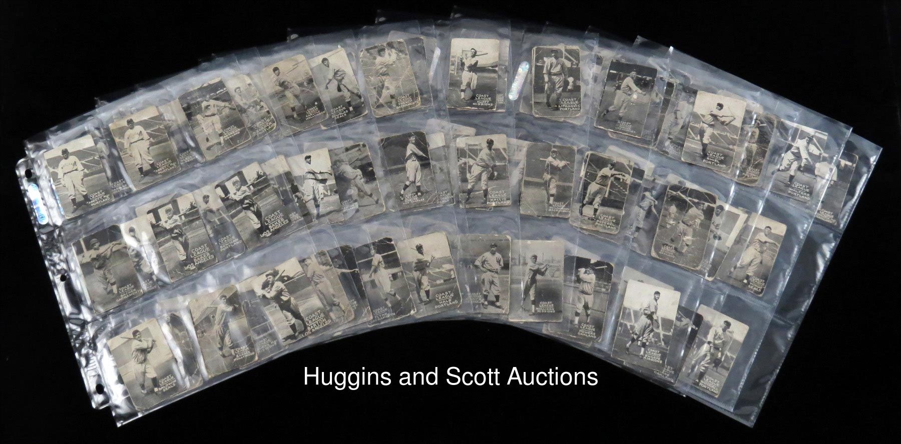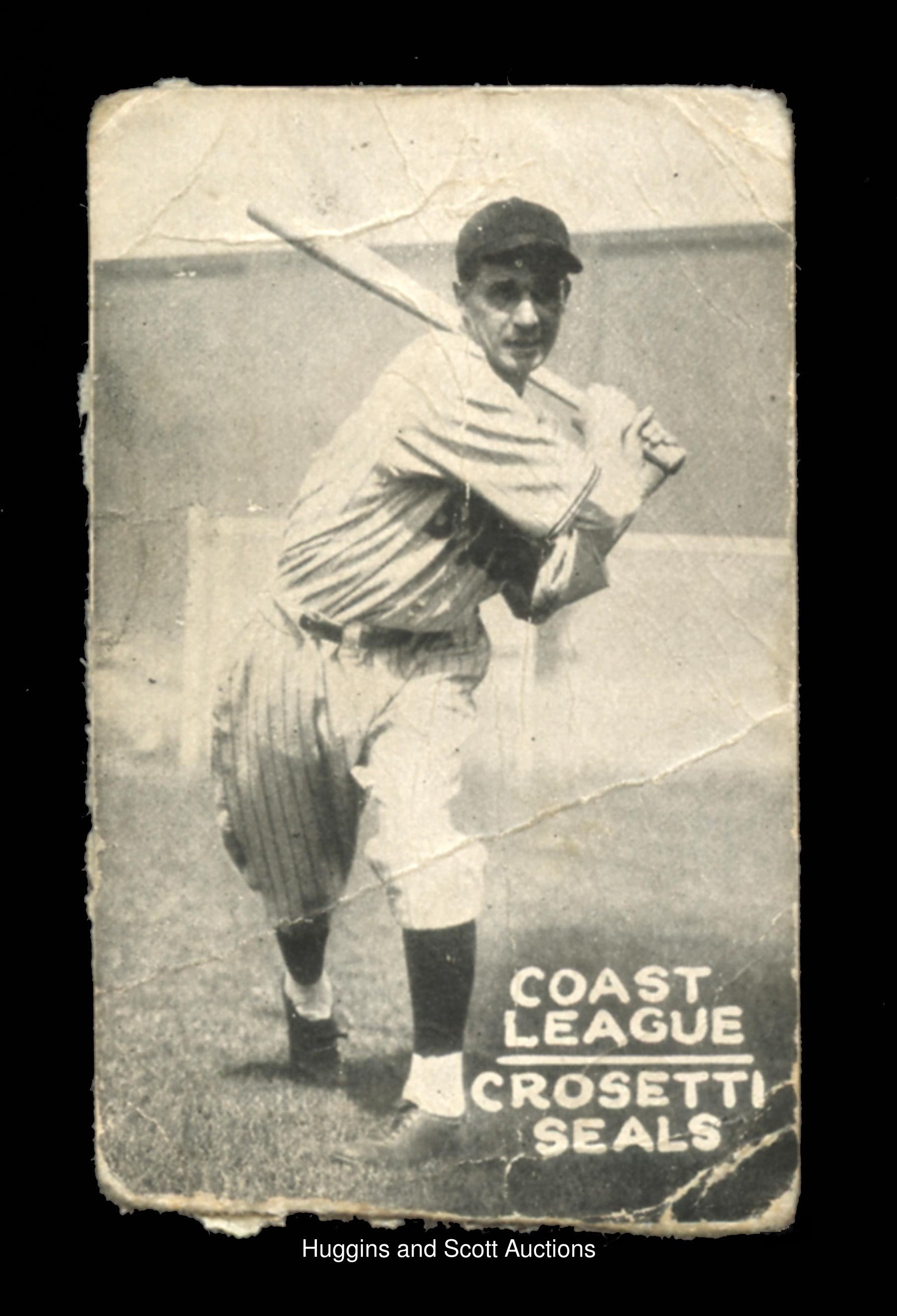 Presented is a 1931 Zeenuts PCL near set of (97/120) cards plus (16) duplicates with no coupons attached. The clear black-and-white obverses generally present in the (FR to GD) range while the reverses each display paper loss and/or residue. Includes the key Crosetti card making the remainder of the set that much more obtainable. Note: All proceeds will be donated to PALS: People Assisting the Lodi Shelter--a non-profit animal rescue. More on our website. Missing: (23 cards) with Anton, Chesterfield, Davis, Dean, Demaree, Gazella, Hurst, Keating, Knothe, Kohler, Lamanski, Lee, Penebskey, Pinelli, Pool, Ricci, Ryan, Steinbacker, Uhalt, Wetzel, Williams (San Francisco), Wirts, Zinn; Duplicates: (16 cards) with Abbott, Baker, Carlyle, Gabler, (2) Hale, Hamilton, Jacobs, Lelilvelt, (2) Posedel, Schino, Wade, Wise, Yerkes, Zamlock Click here to link to PALS website for more information