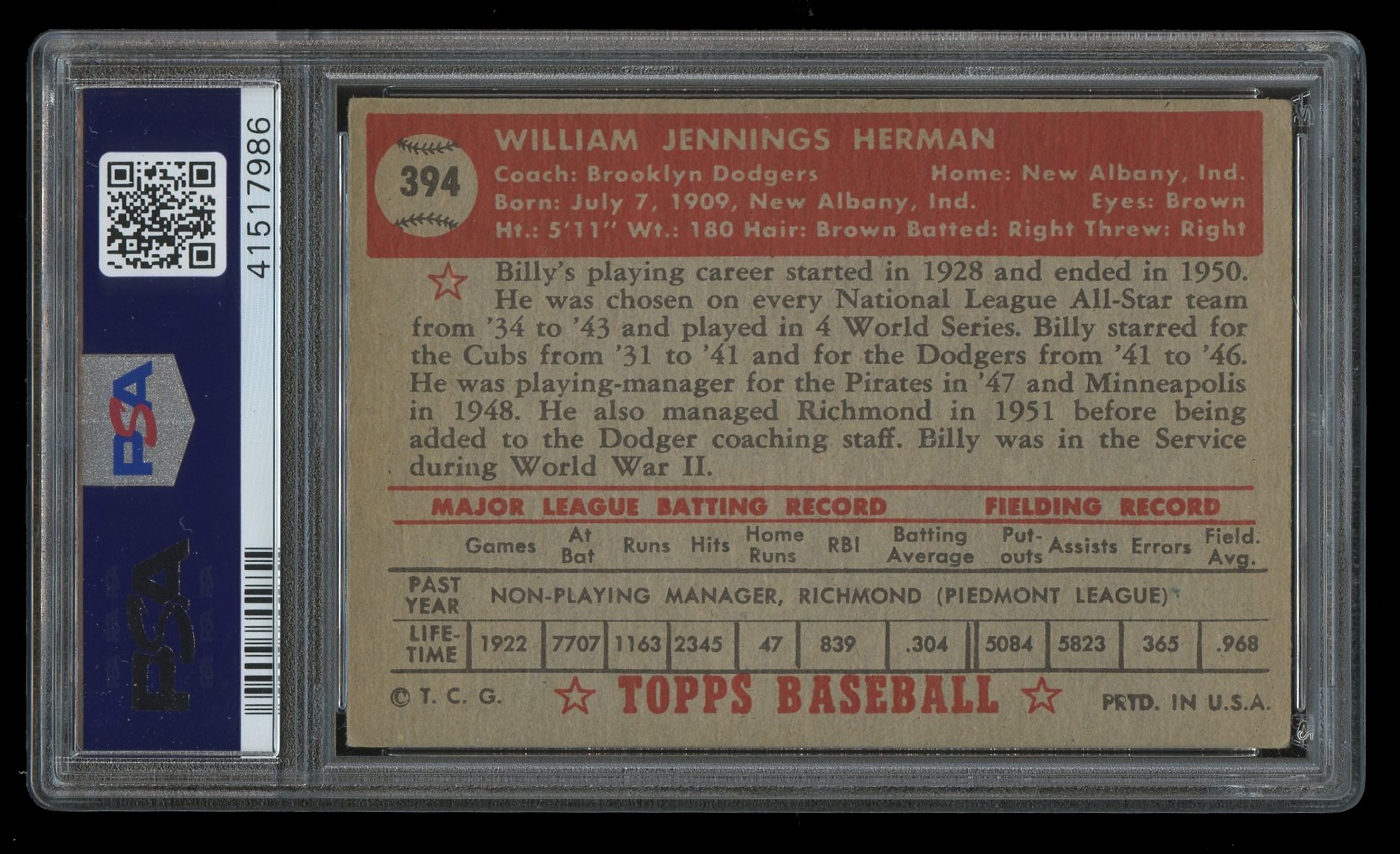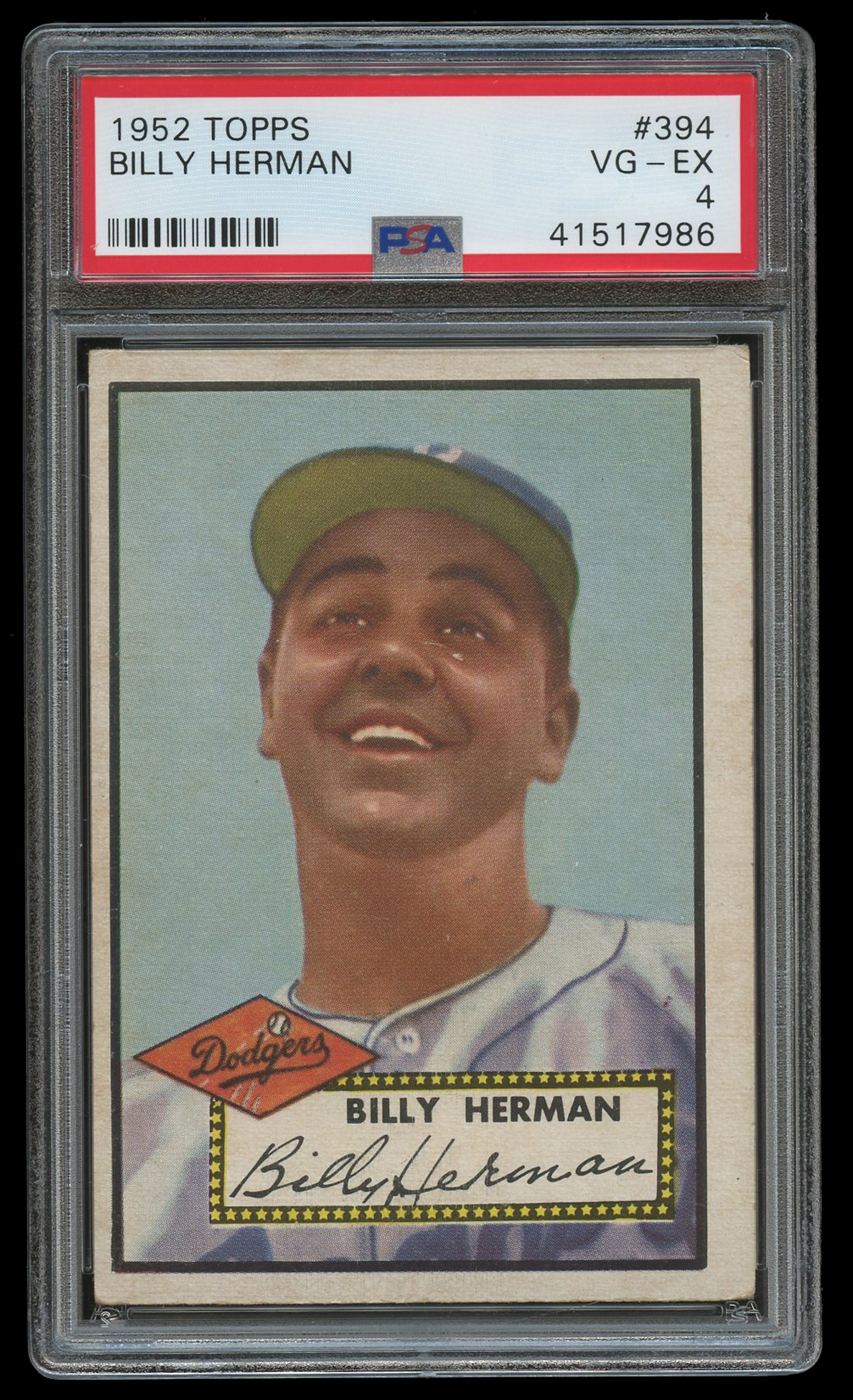 1952 Topps Baseball #394 Billy Herman PSA 4 Hi Number.