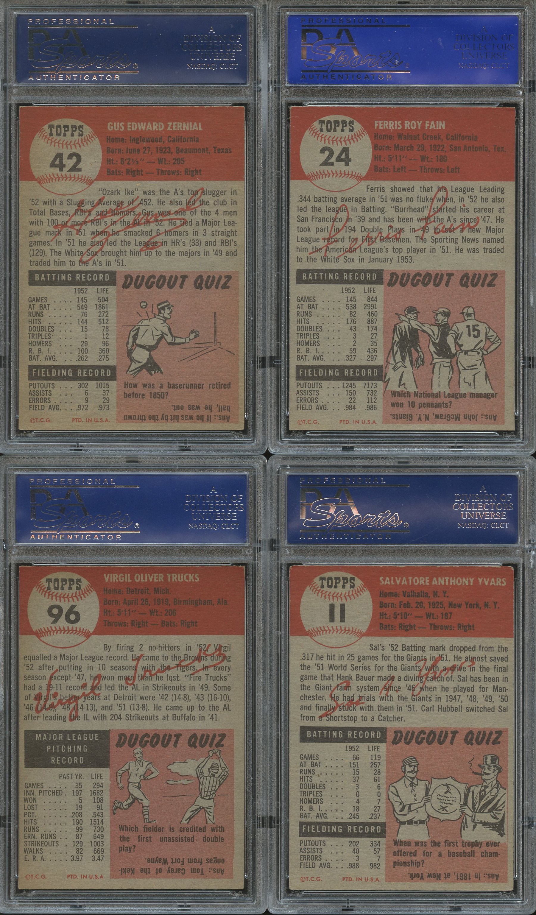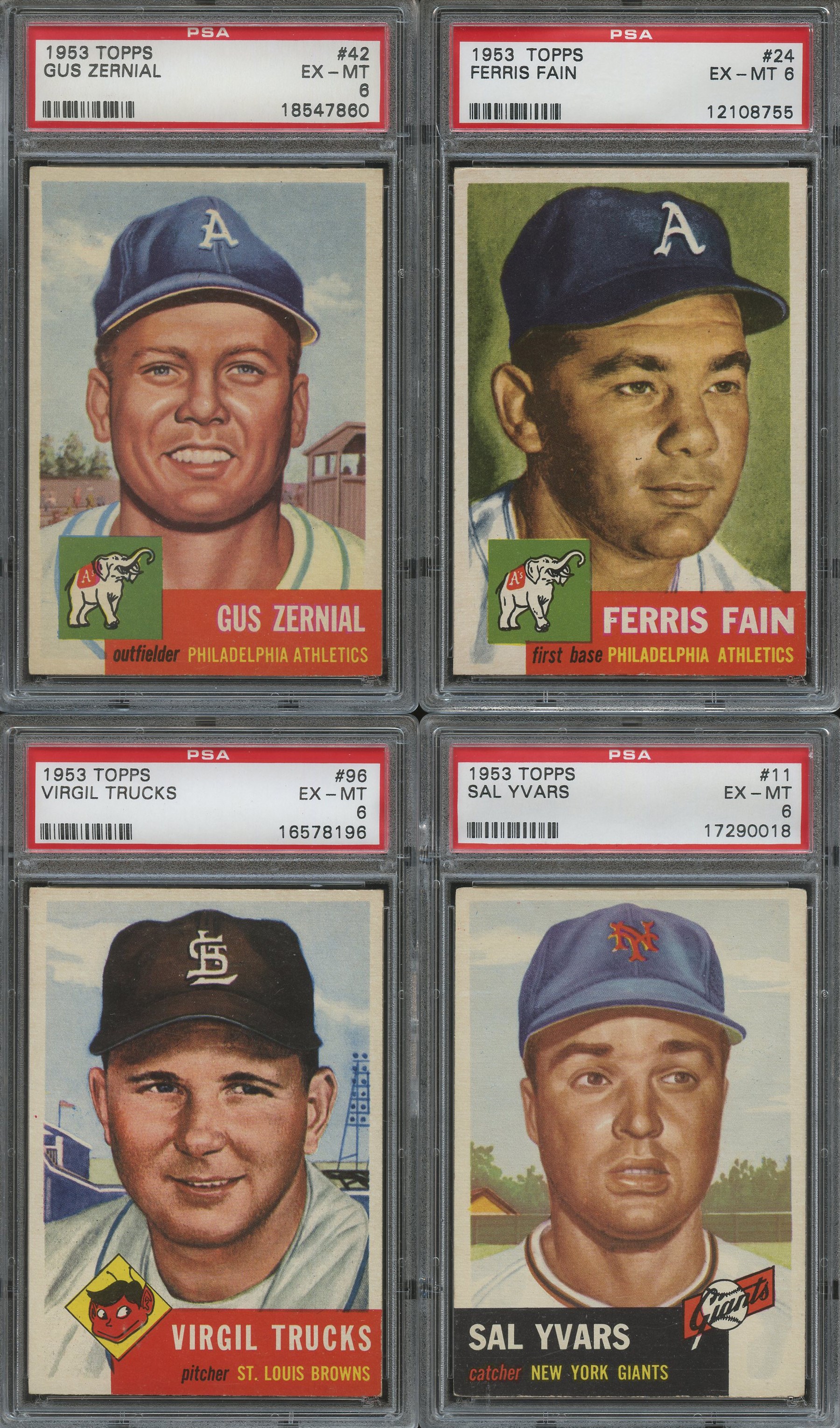 1953 Topps Baseball PSA Graded "6" Lot of (4). Please see photos for details.