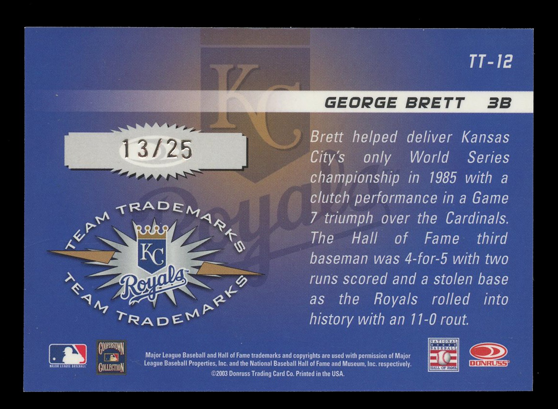 George Brett 2003 Donruss Signature Auto #13/25 Team Tradmarks TT-12.