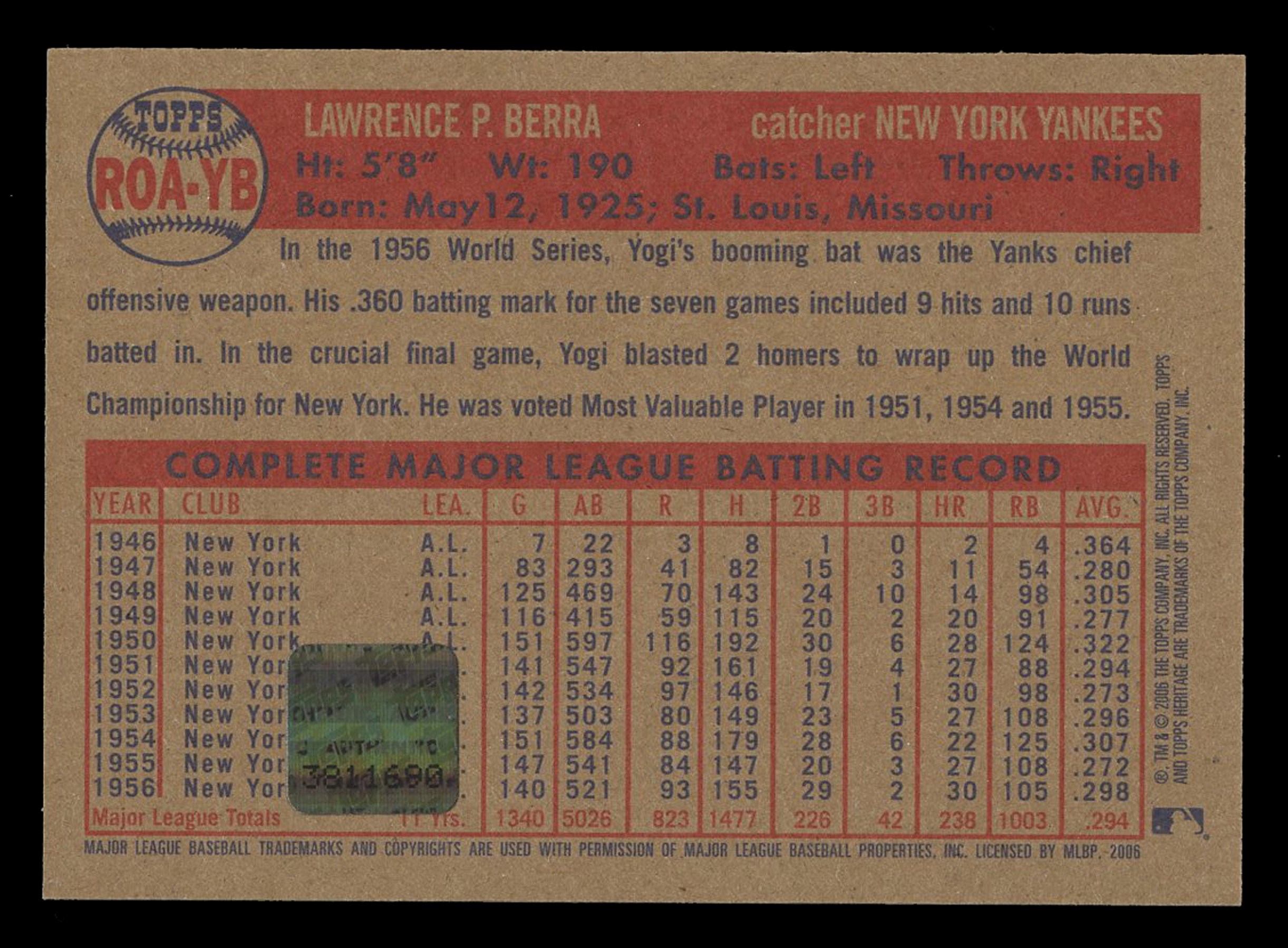 Yogi Berra 2006 Topps Heritage on-card autograph #ROA-YB.