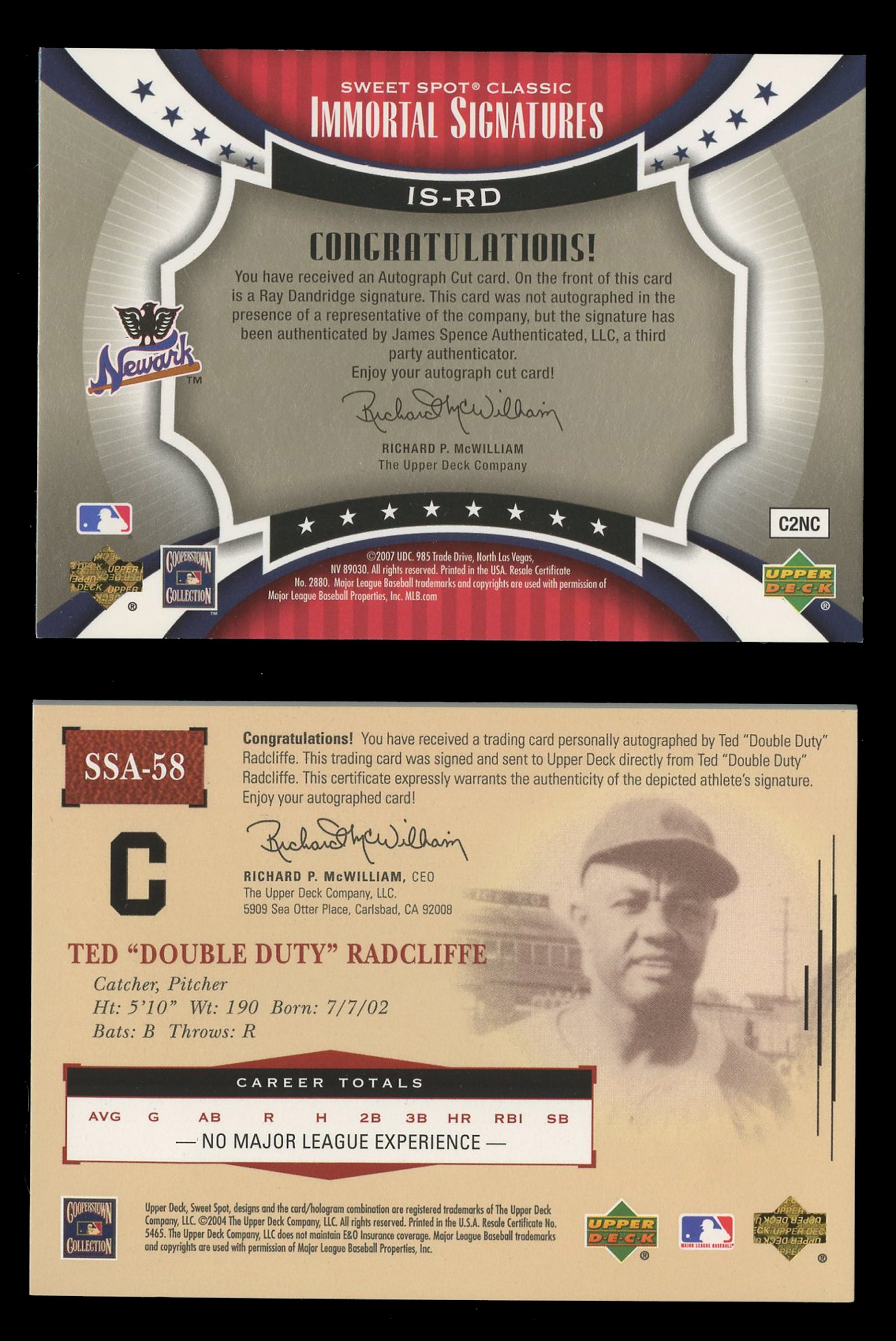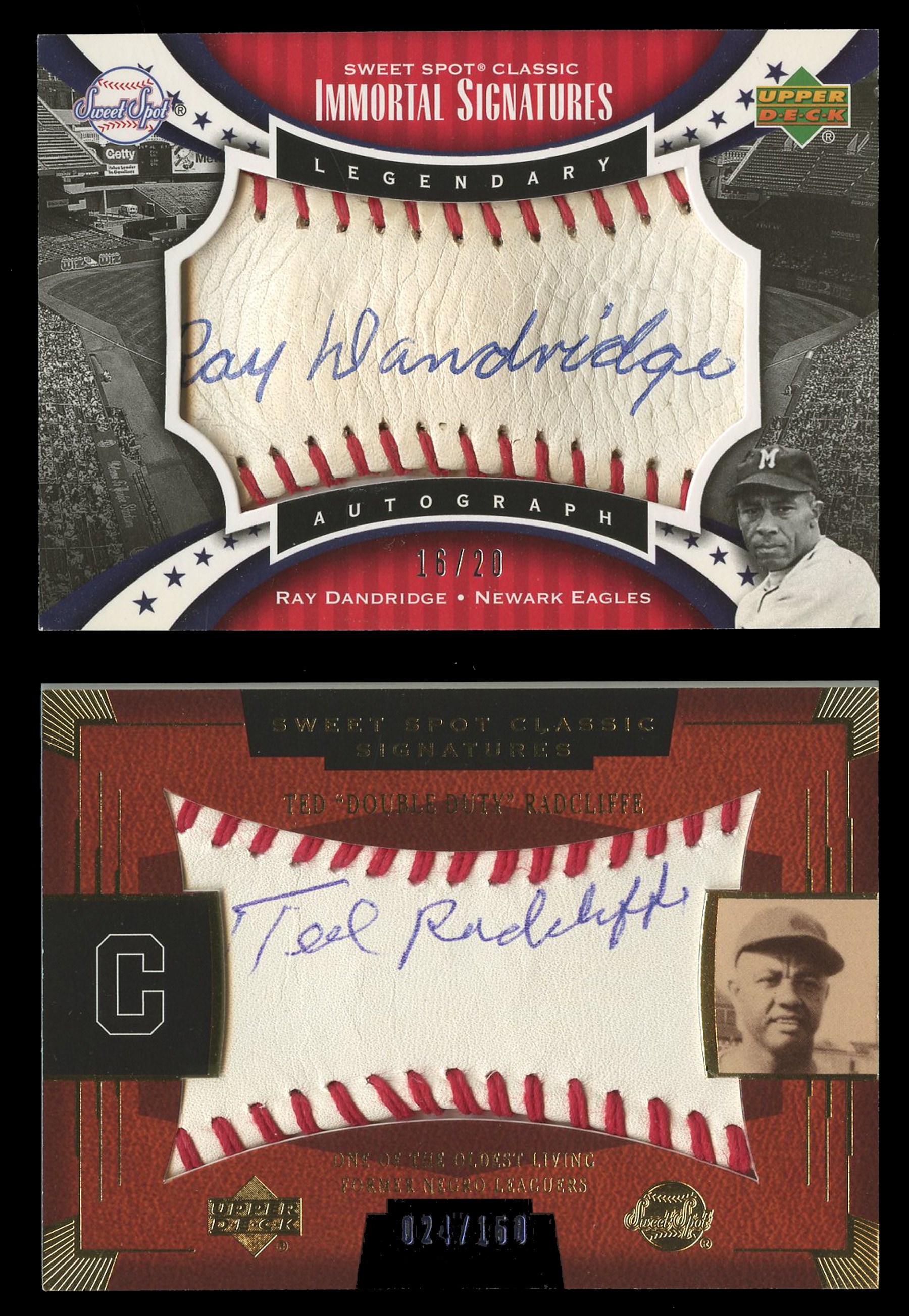 Lot of (2) Upper Deck Sweet Spot autos including Immortal Signatures 2007 Ray Dandridge 16/20 and 2004 Classic Signaures Ted Radcliffe 24/150.