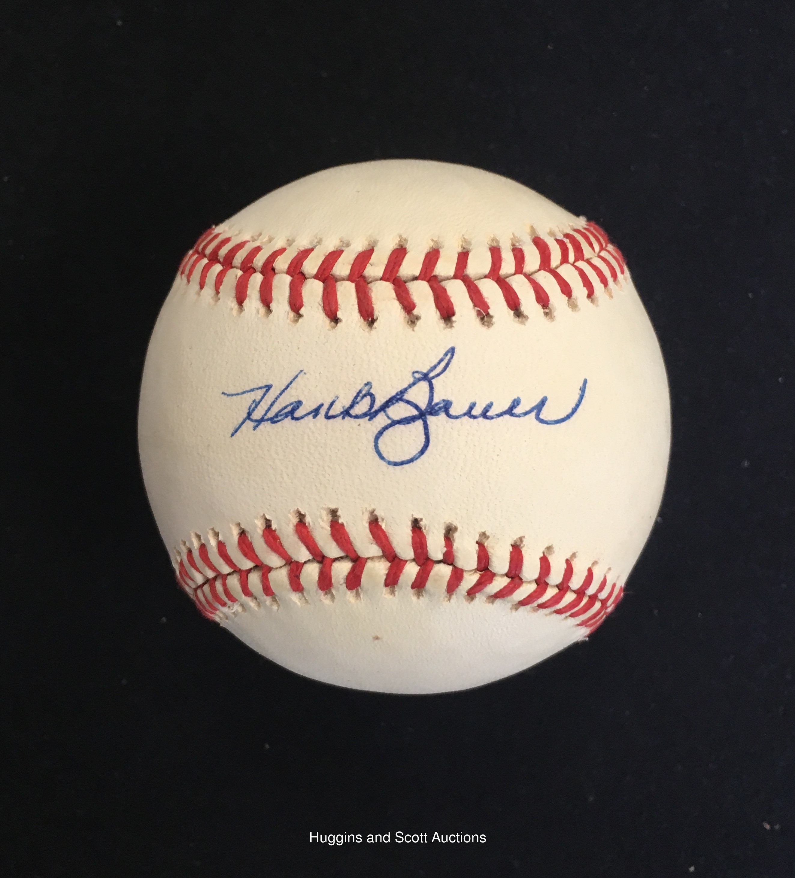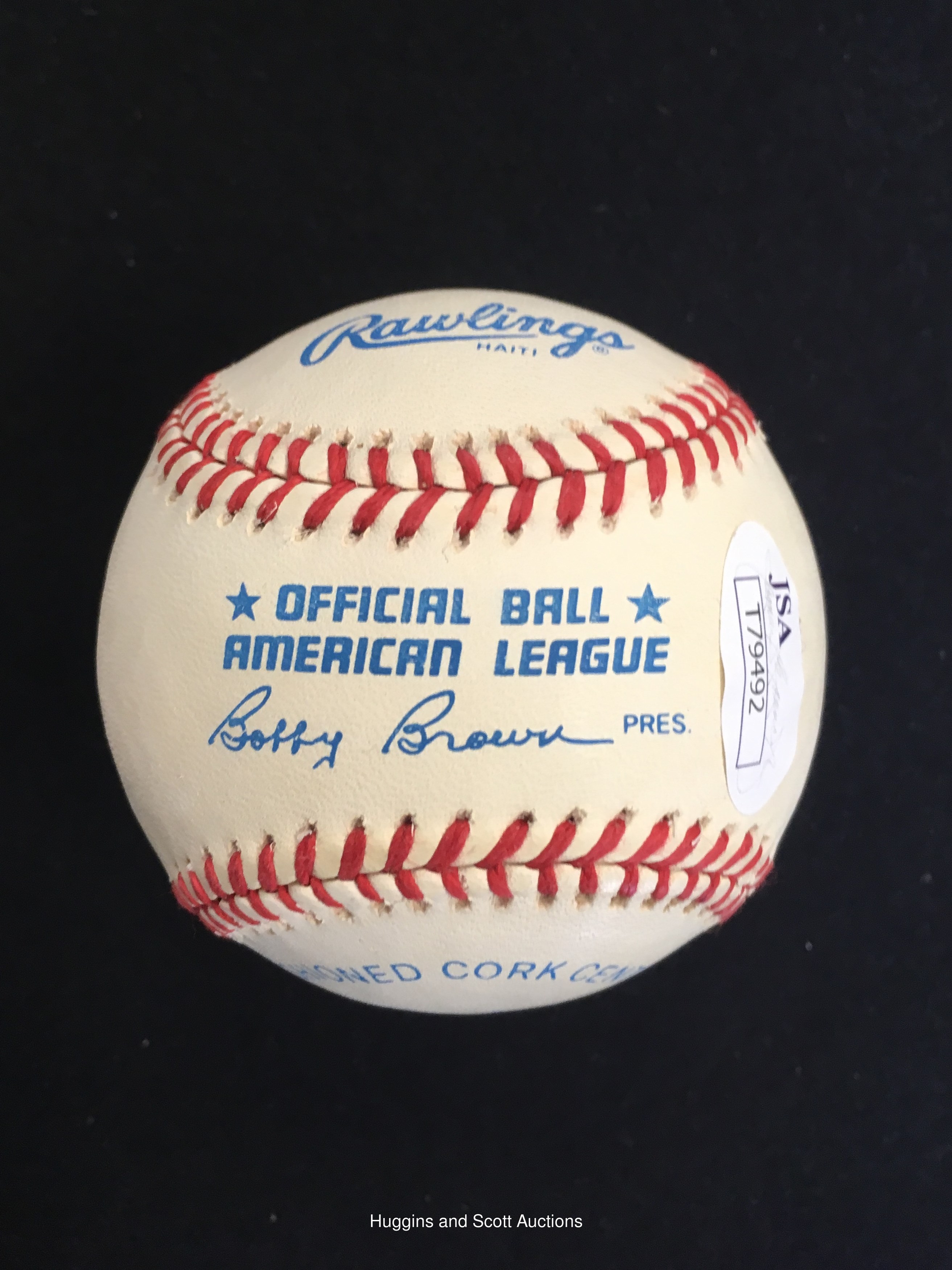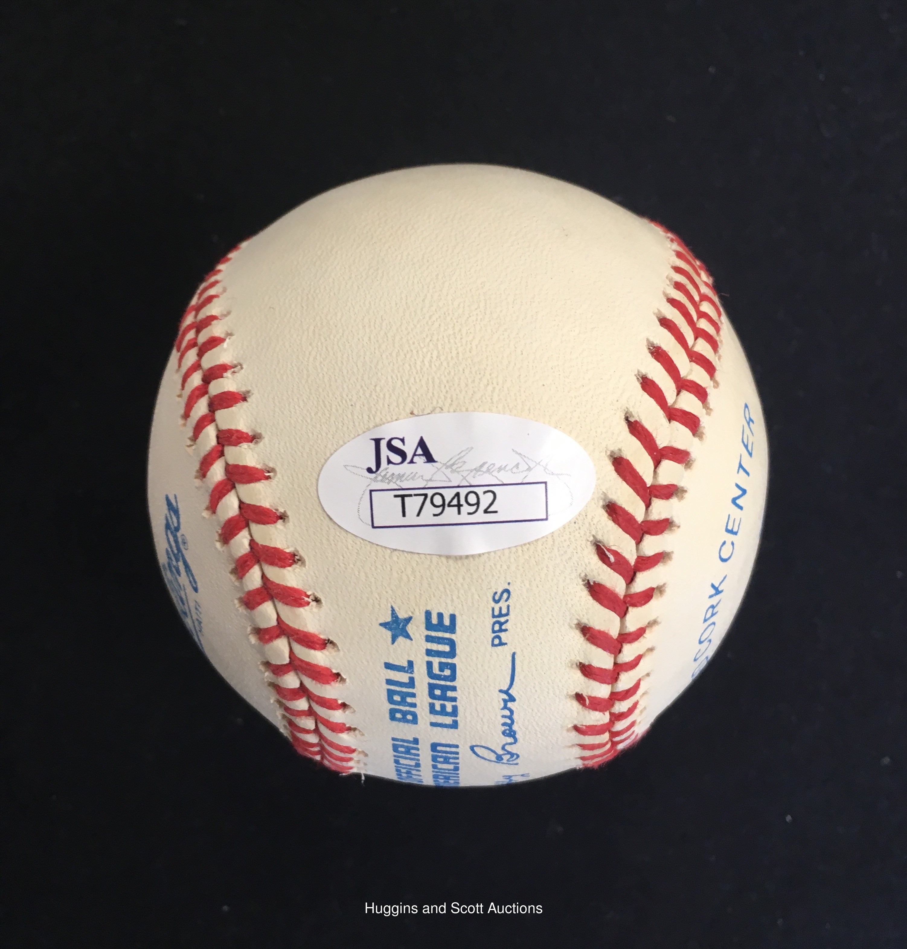 Hank Bauer single-signed OAL Brown baseball ("8"). Blue ballpoint signature ("9"). Very mild toning. Accompanying JSA cert.