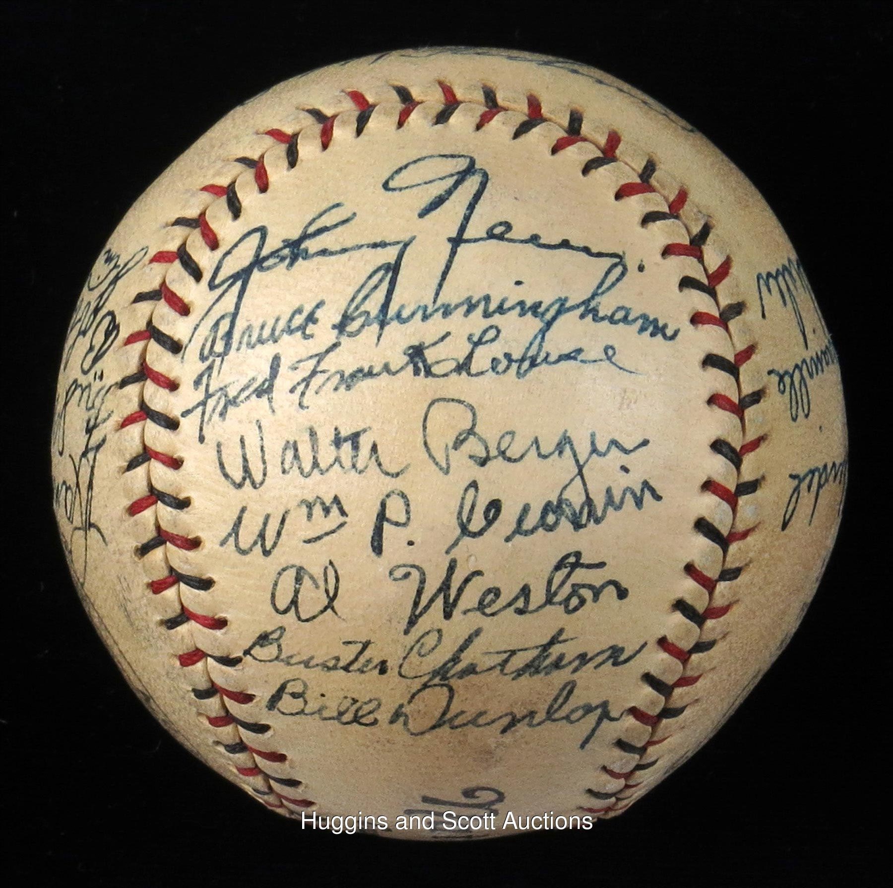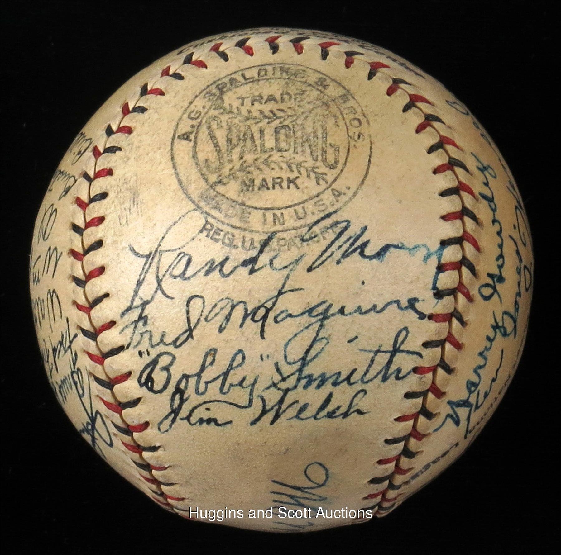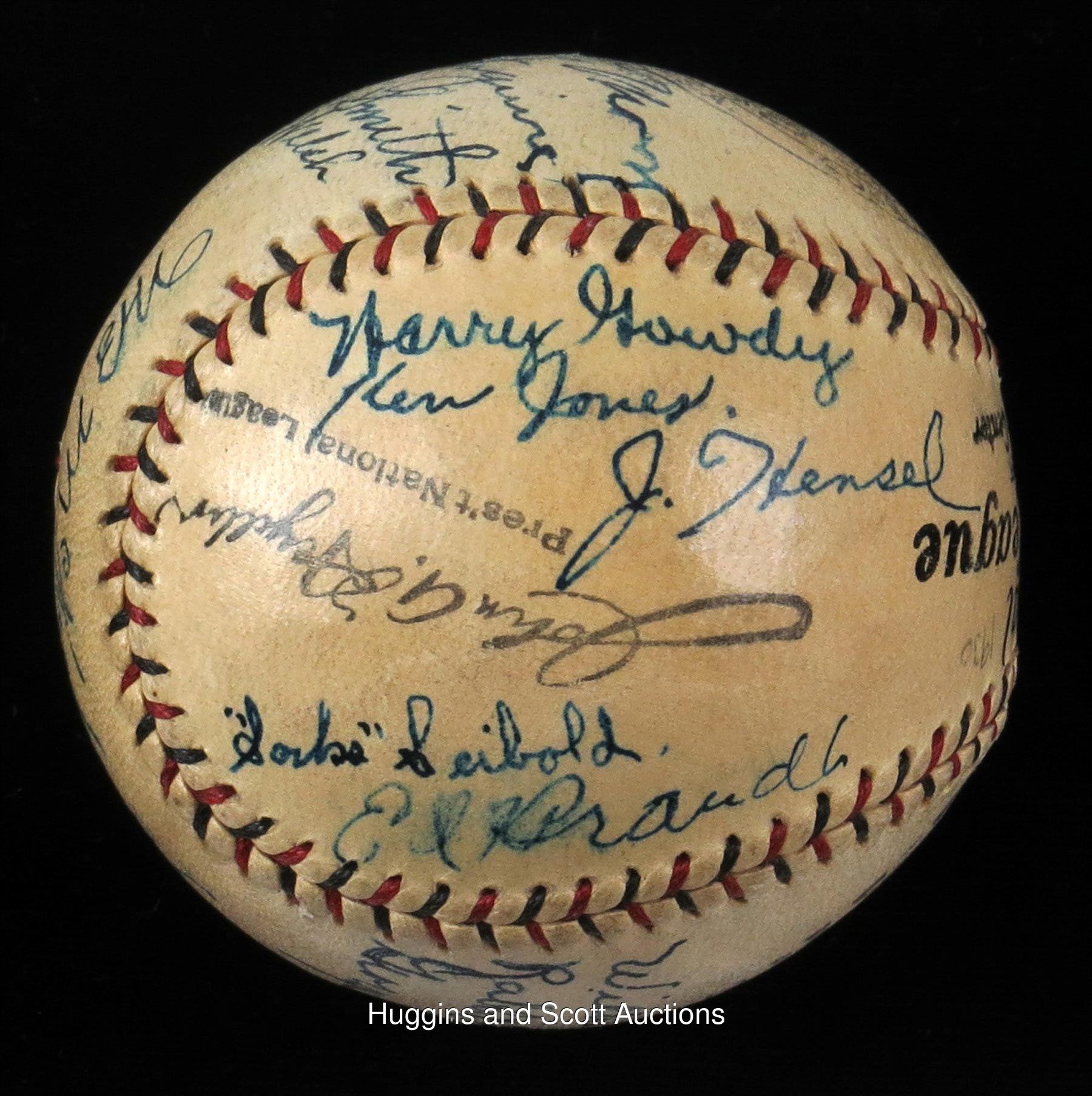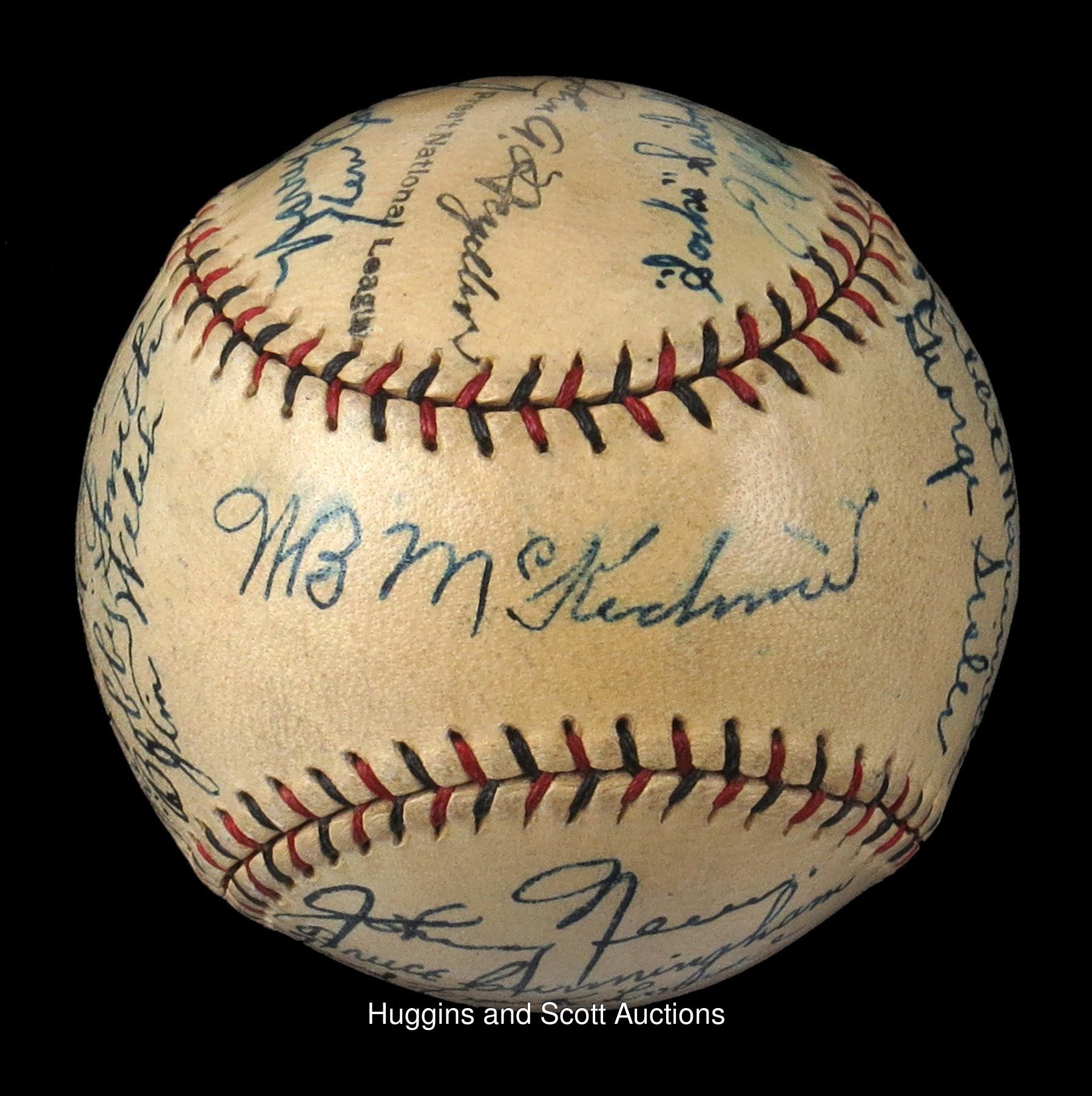 Gorgeous George Sisler"s career can of course be divided into pre-1923 and post-1923—either side of the sinus condition that damaged his optic nerve. Yet somehow, even though his performance dropped off considerably, Sisler still managed to bat over .300 year in and year out—including this, his final campaign of 1930. The medium-toned ONL (Heydler) ball features "8-10" signatures. Sweet Spot: McKechnie North Panel: Hank Gowdy, Ken Jones, J. Hensel, Socks Seibold, Ed Brandt South Panel: Johnny Neun, Bruce Cunningham, Fred Frankhouse, Walter Berger, Bill Cronin, Al Weston, Buster Chatham, Bill Dunlap West Panel: Randy Moore, Fred Maguire, Bob Smith, Jim Welch East Panel: Bill Sherdel, Maranville, Sisler Full LOA from JSA.