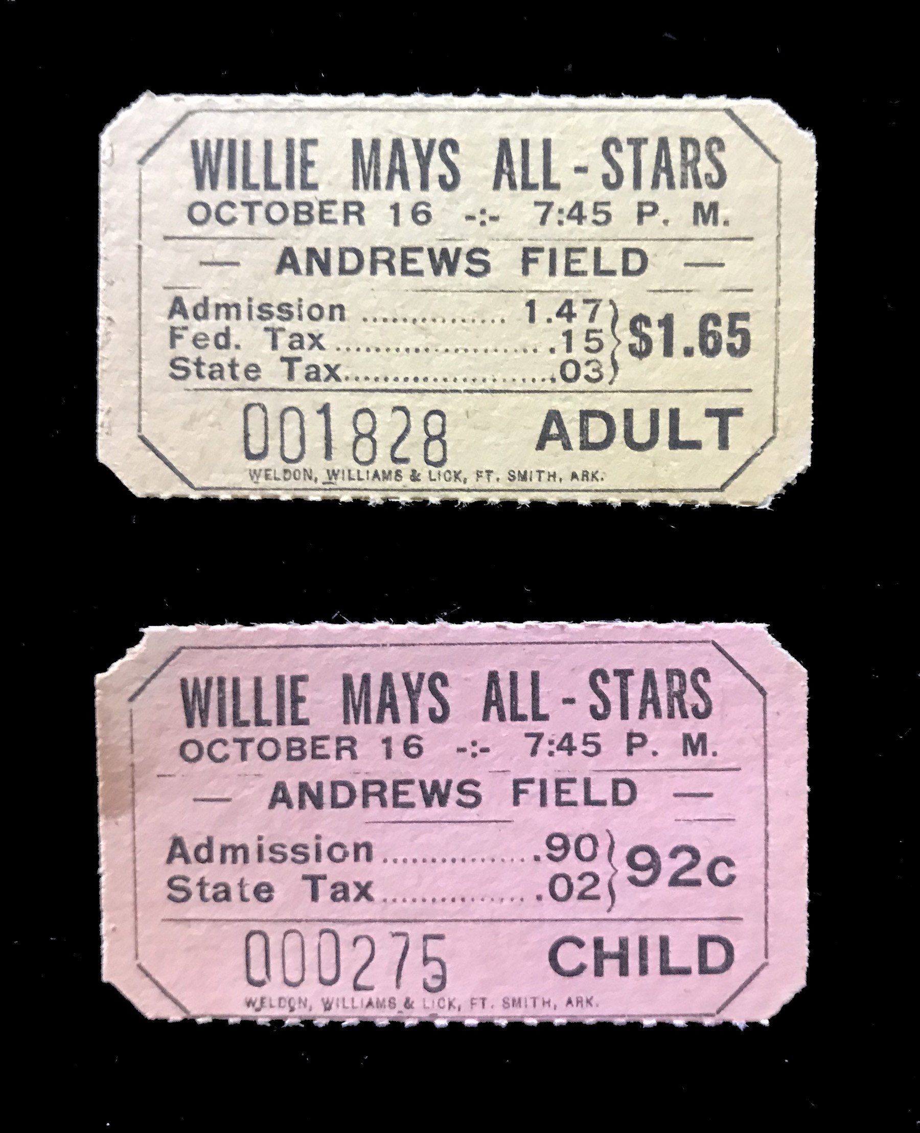 October 16,1956 Willie Mays All-Stars Barnstorming Tickets Lot of (2).