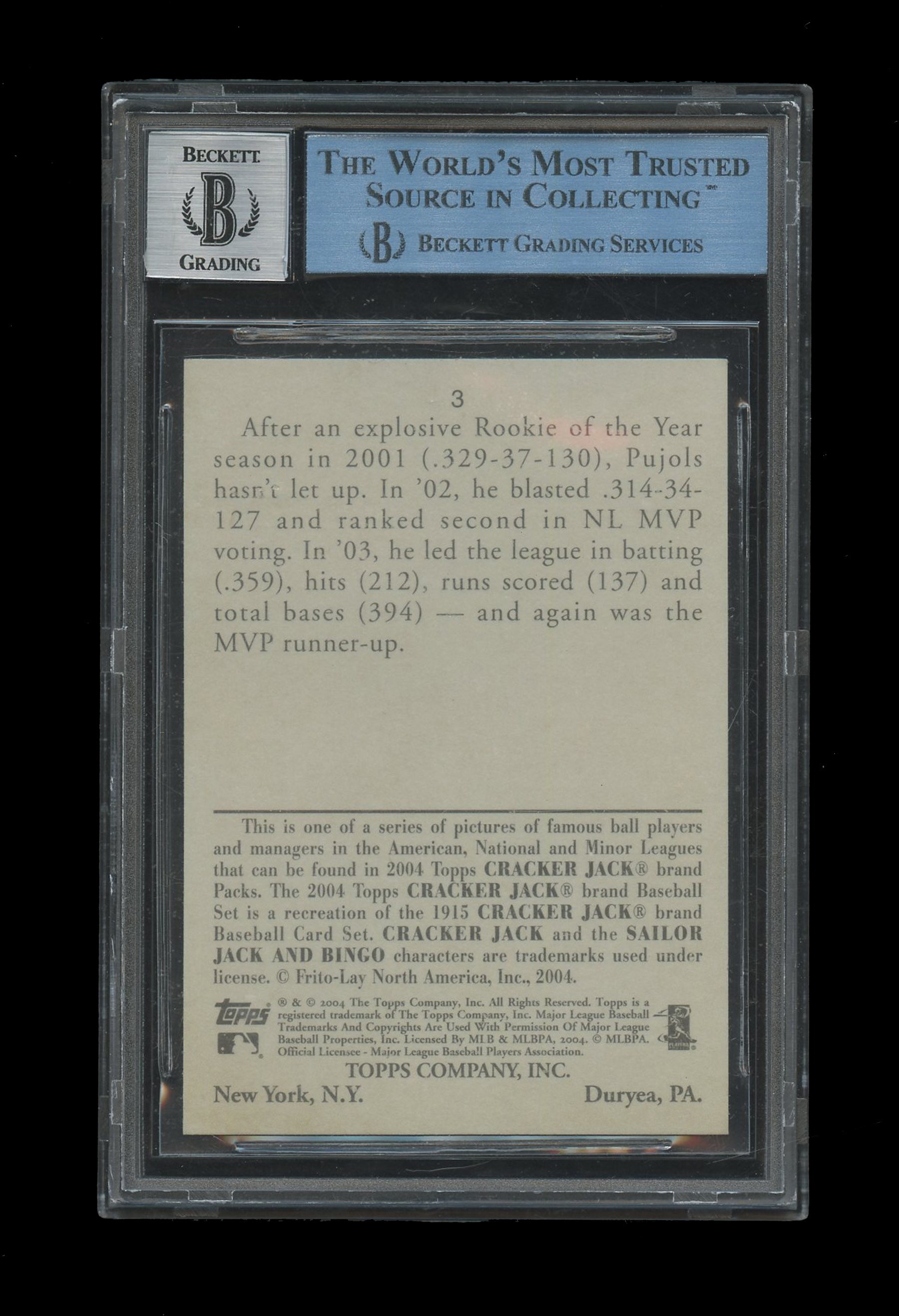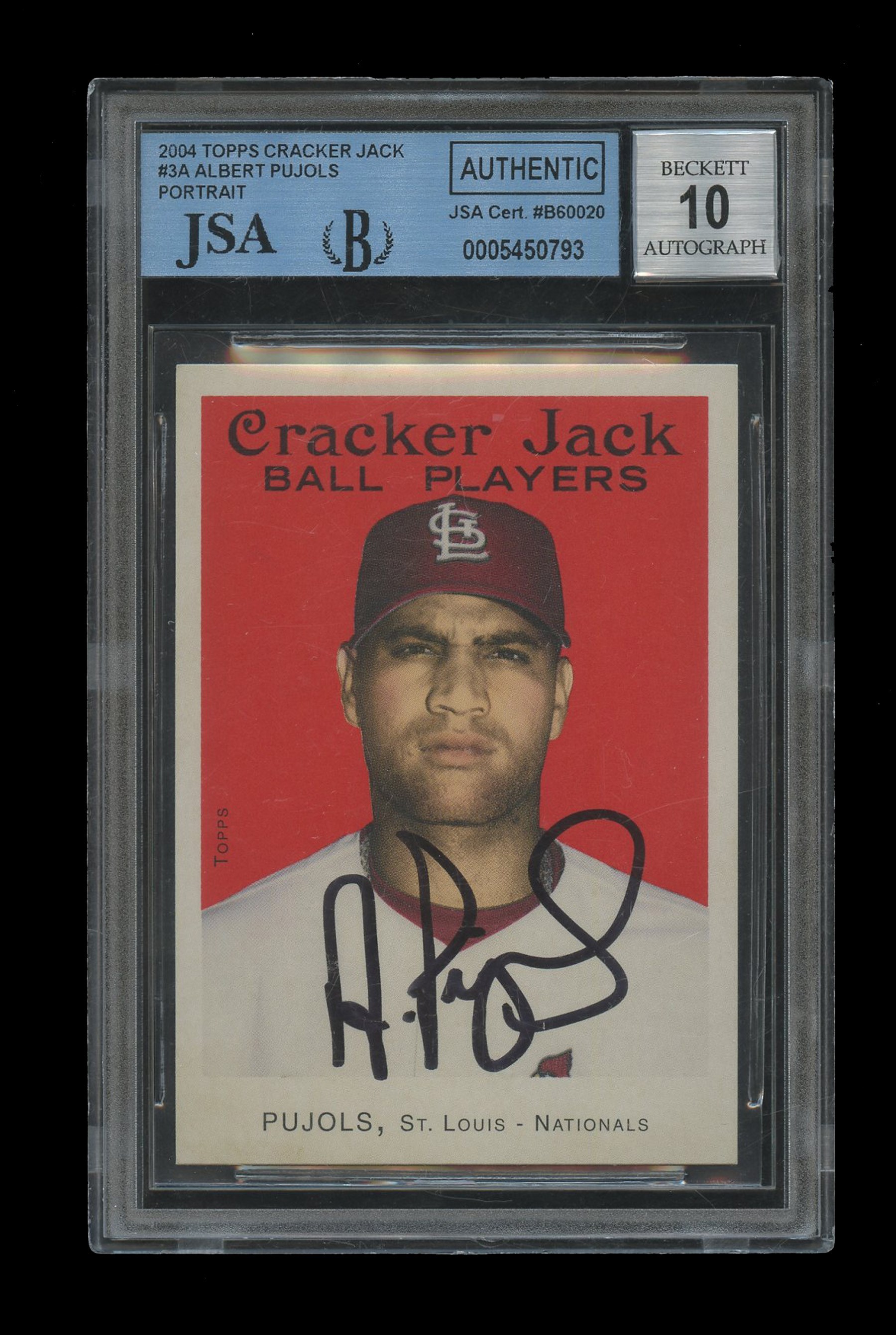 Bold black sharpie signed 2004 Topps Cracker Jacks Albert Pujols #3A. JSA authentic with perfect "10" Beckett autograph grade.