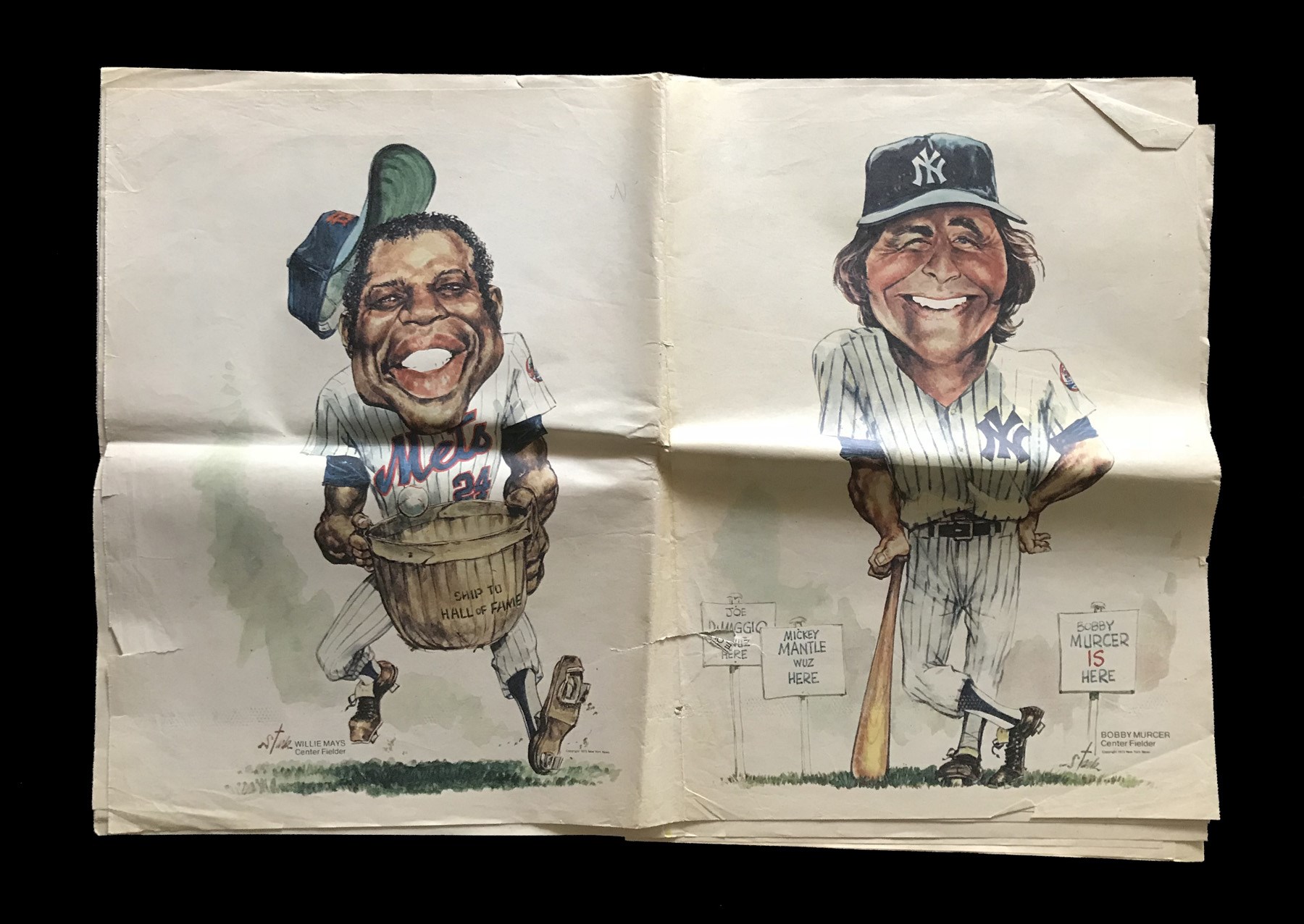 1973 Yankees/Mets New York Daily News Caricature Near Set 18/22 with Mays, Berra, Seaver, and more. Folds and creases preset as well as some ordinary discoloration. See photos for details.