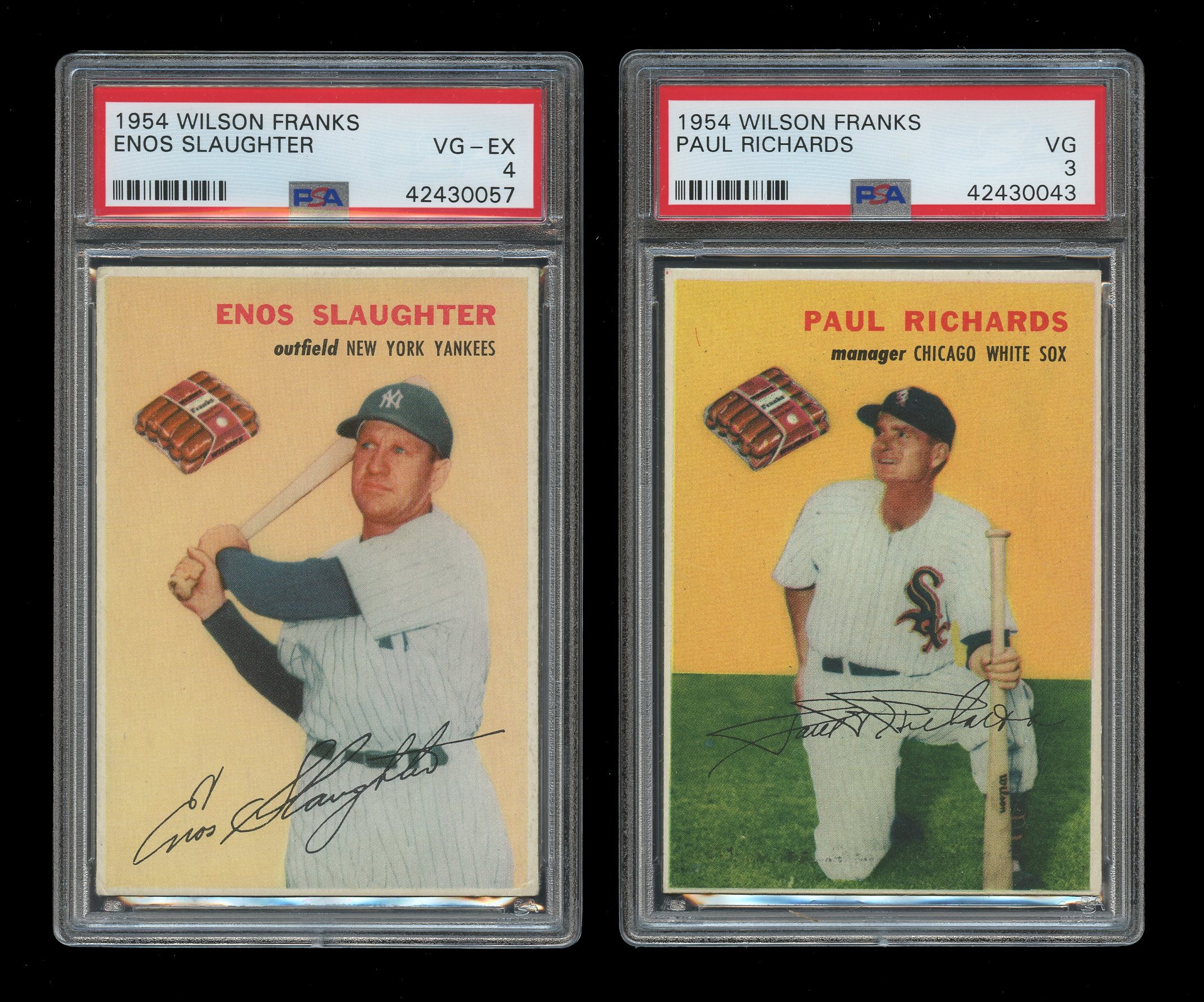 Lot of (2) 1954 Wilson Franks including Enos Slaughter PSA 4 VG-EX and Paul Richards PSA 3 VG.