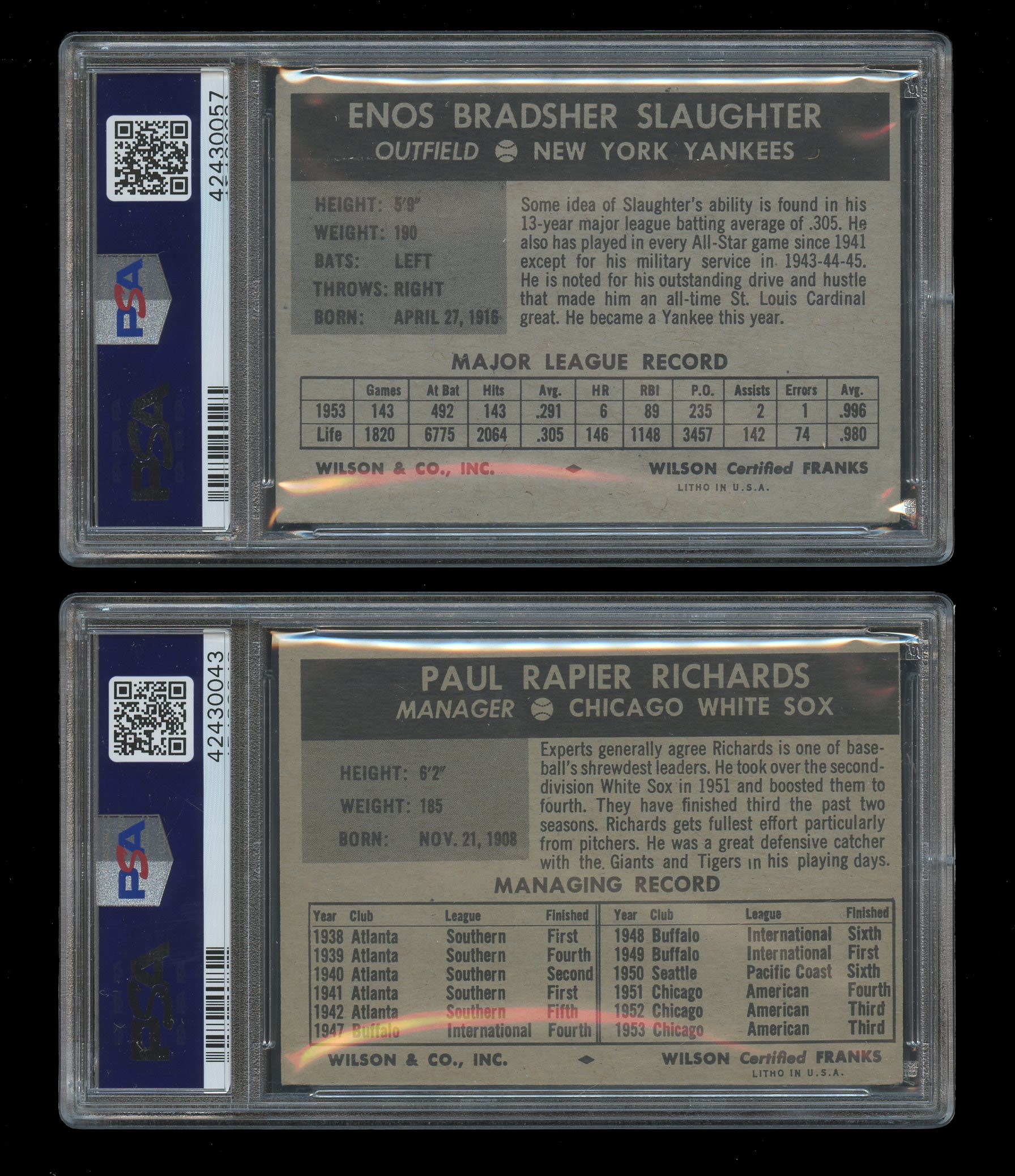 1954 Wilson Franks PSA Graded Pair w/ Enos Slaughter