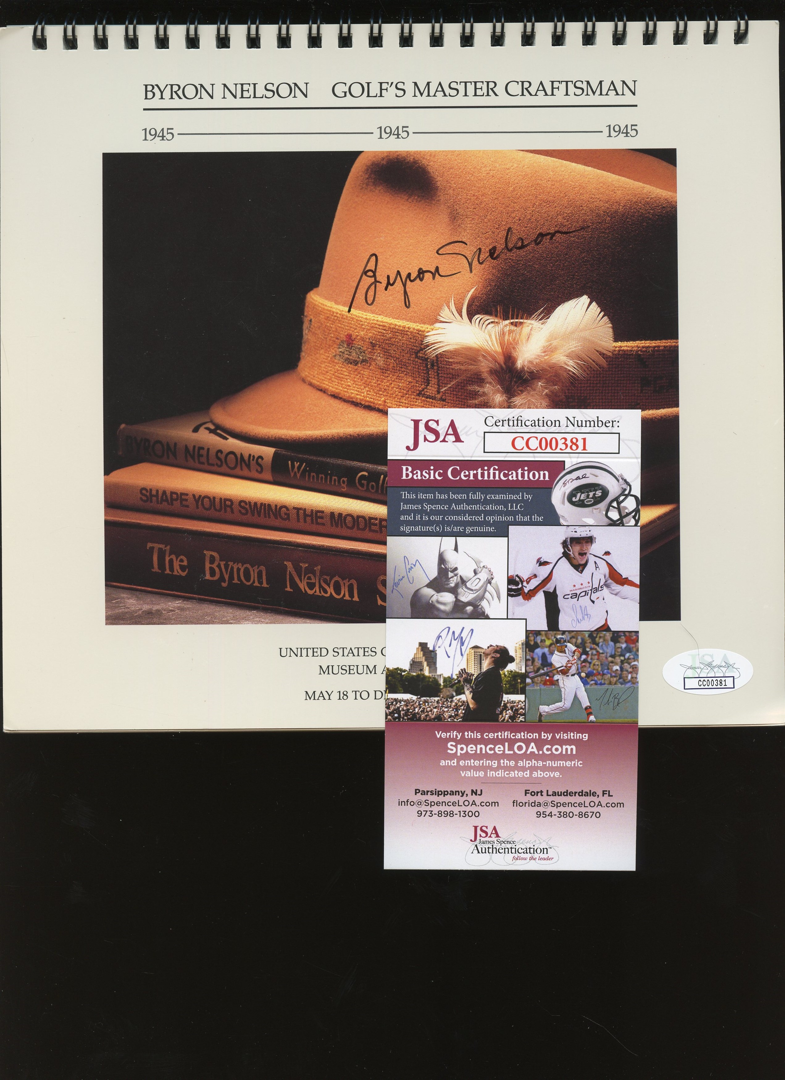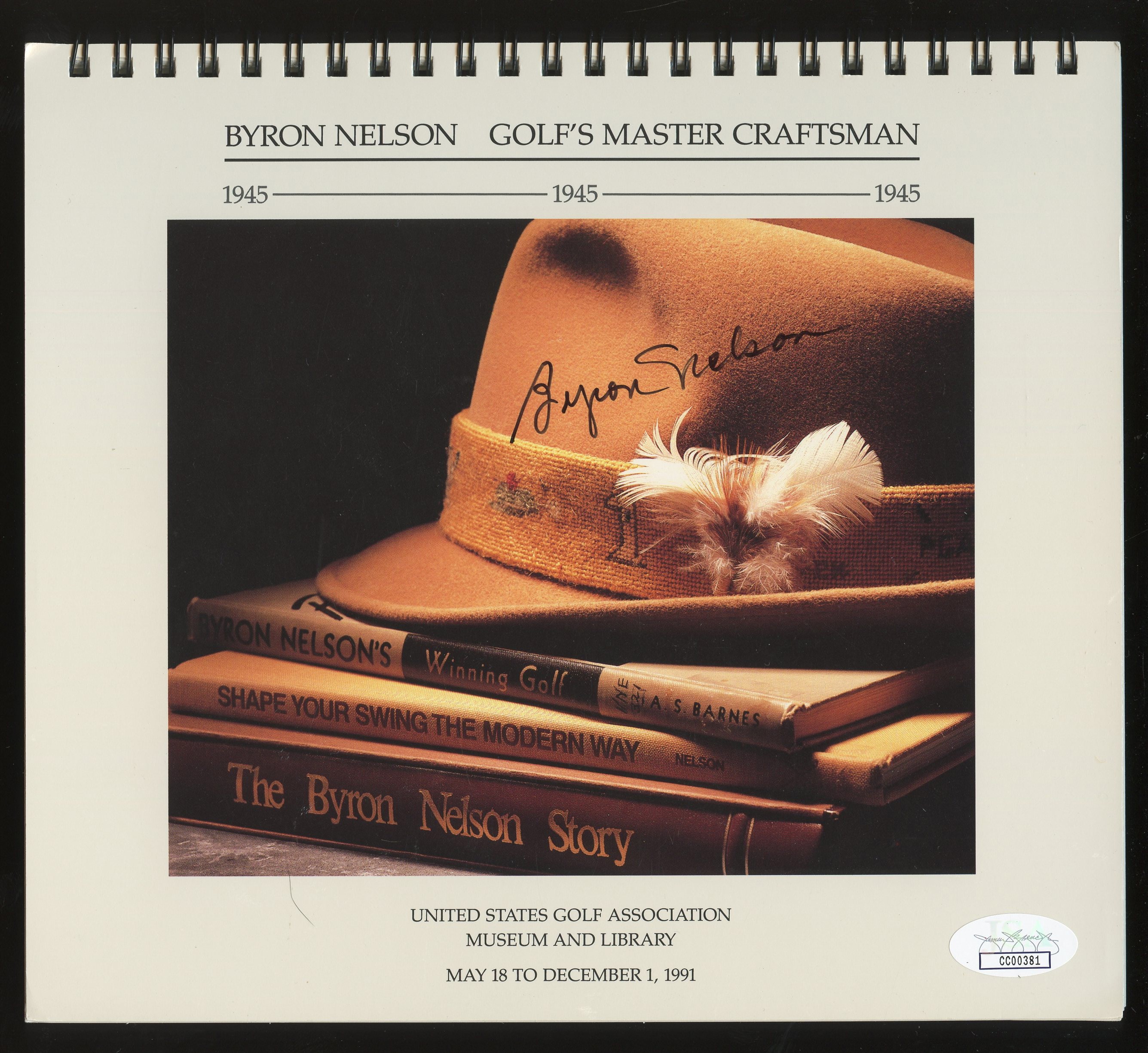 Byron Nelson Signed 1991 USGA Calender with JSA cert. The black sharpie signature ("8") shows some minor thining, but otherwise is a very solid example of this golfing great.