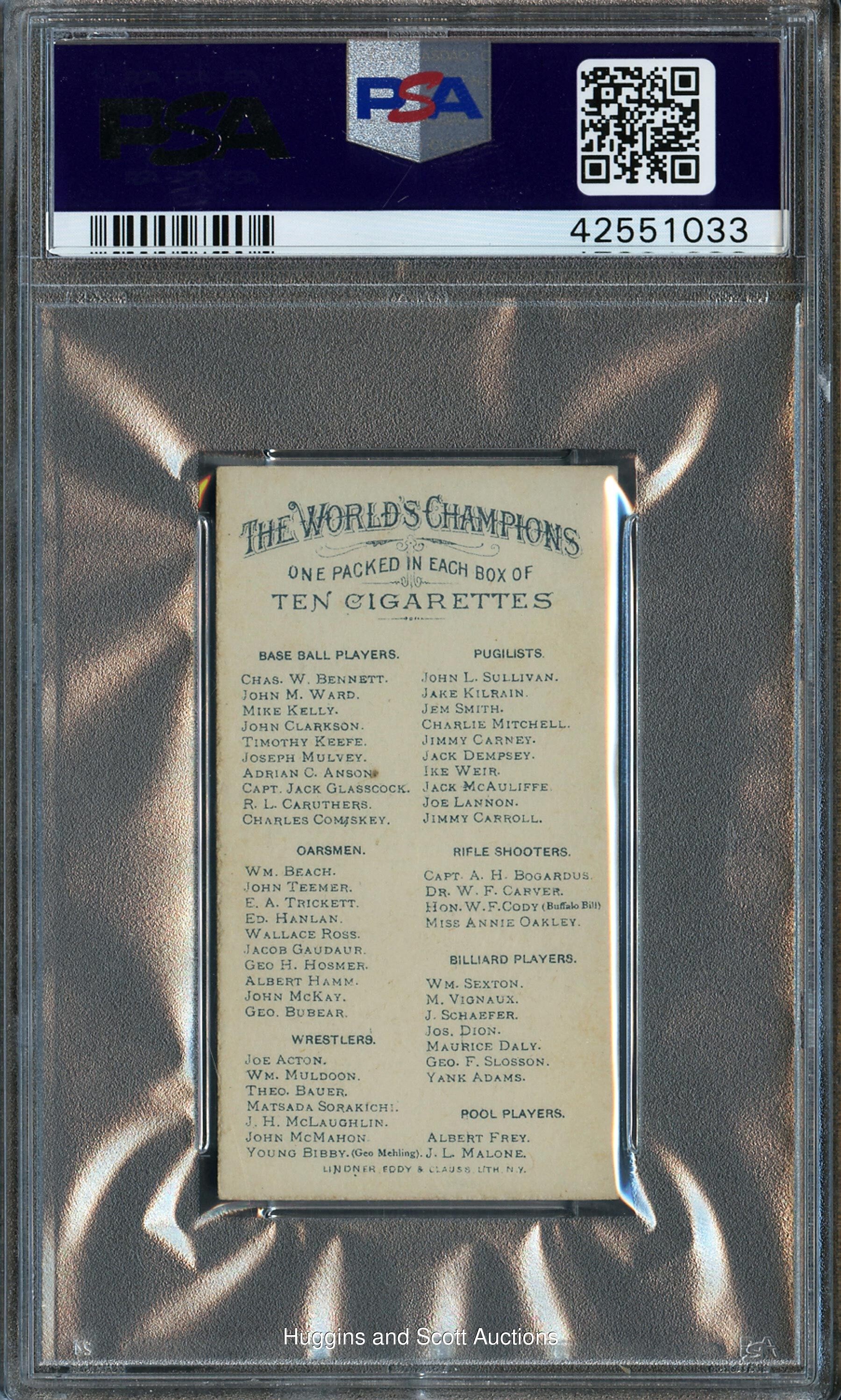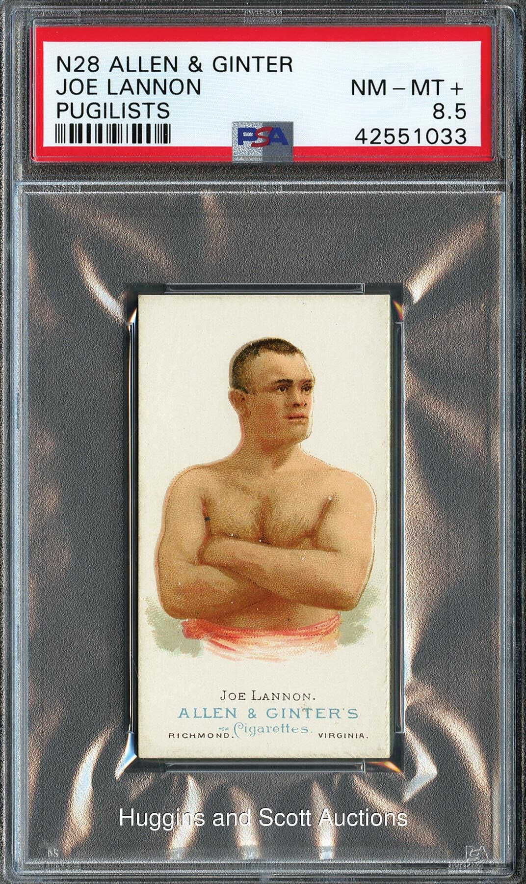 Did You Know? In July 2018, pugilist Joe Lannon was inducted into the Bare Knuckle Boxing Hall of Fame, 125 years after his last fight! Graded NM-MT+ 8.5 by PSA. Joe Lannon is the subject of this ultra high-grade 1888 N28 Allen & Ginter single from the pugilist subset. A razor-sharp specimen that is "a must" for vintage boxing hobbyists! Resides as the lone copy at its grading level with only one better.