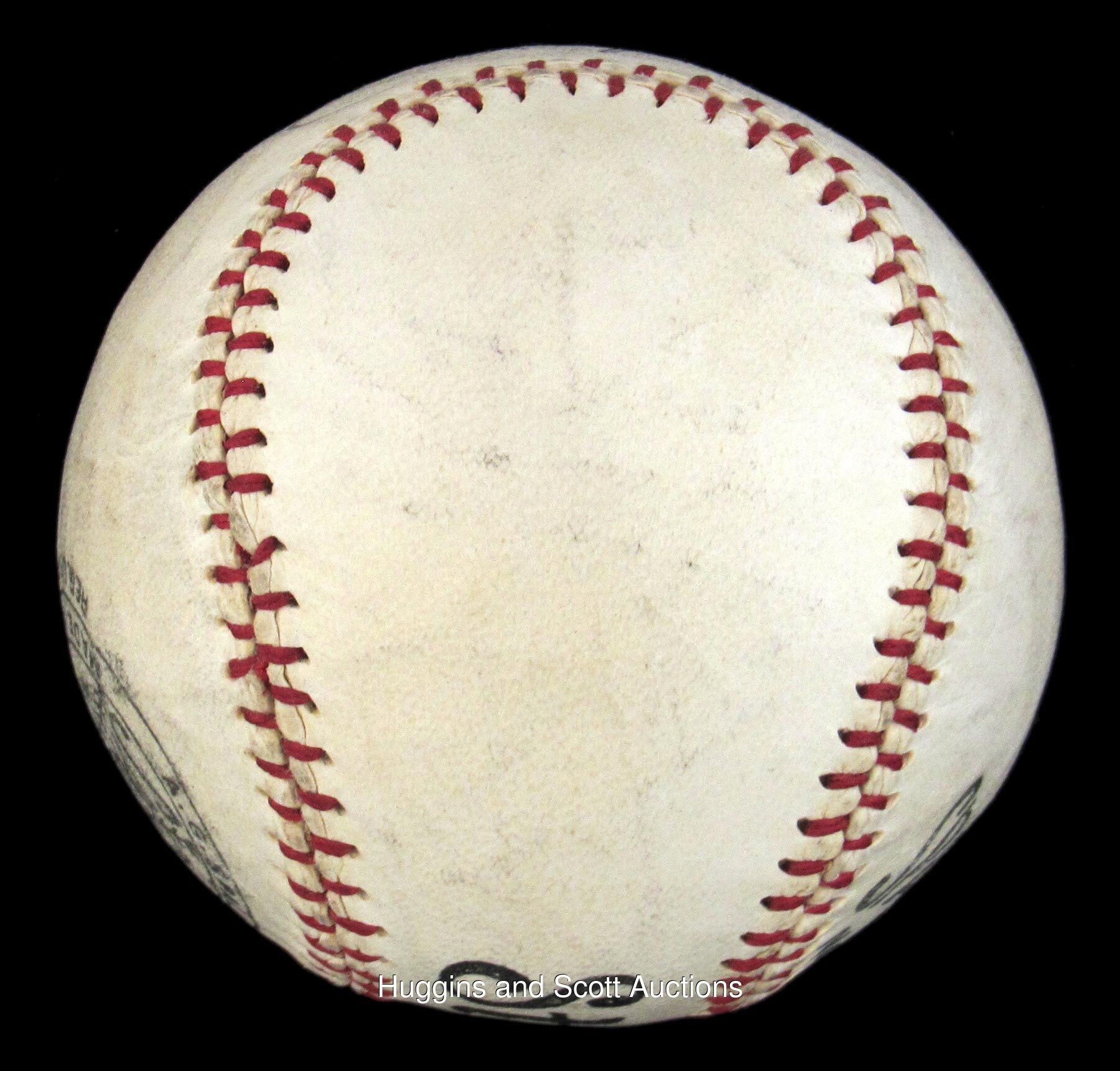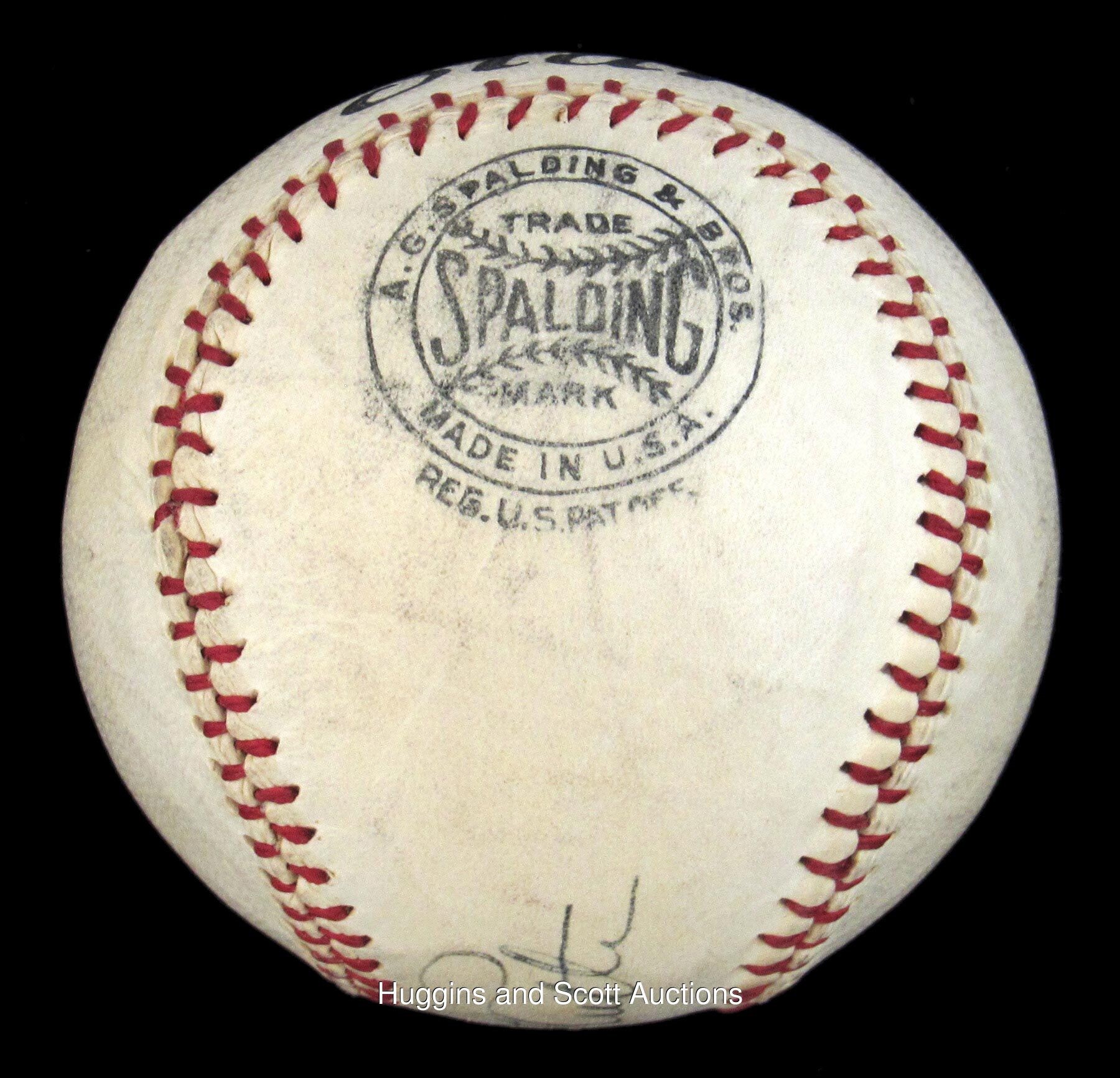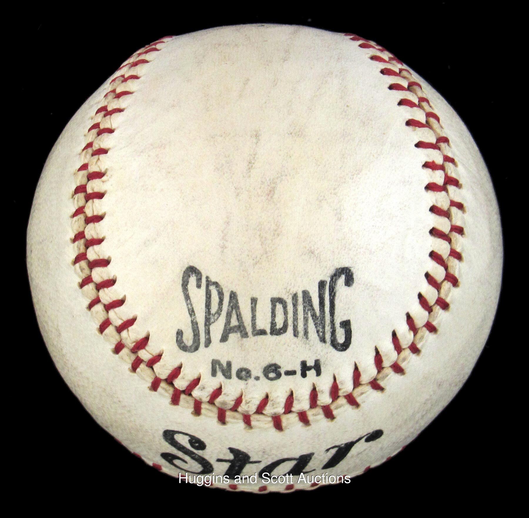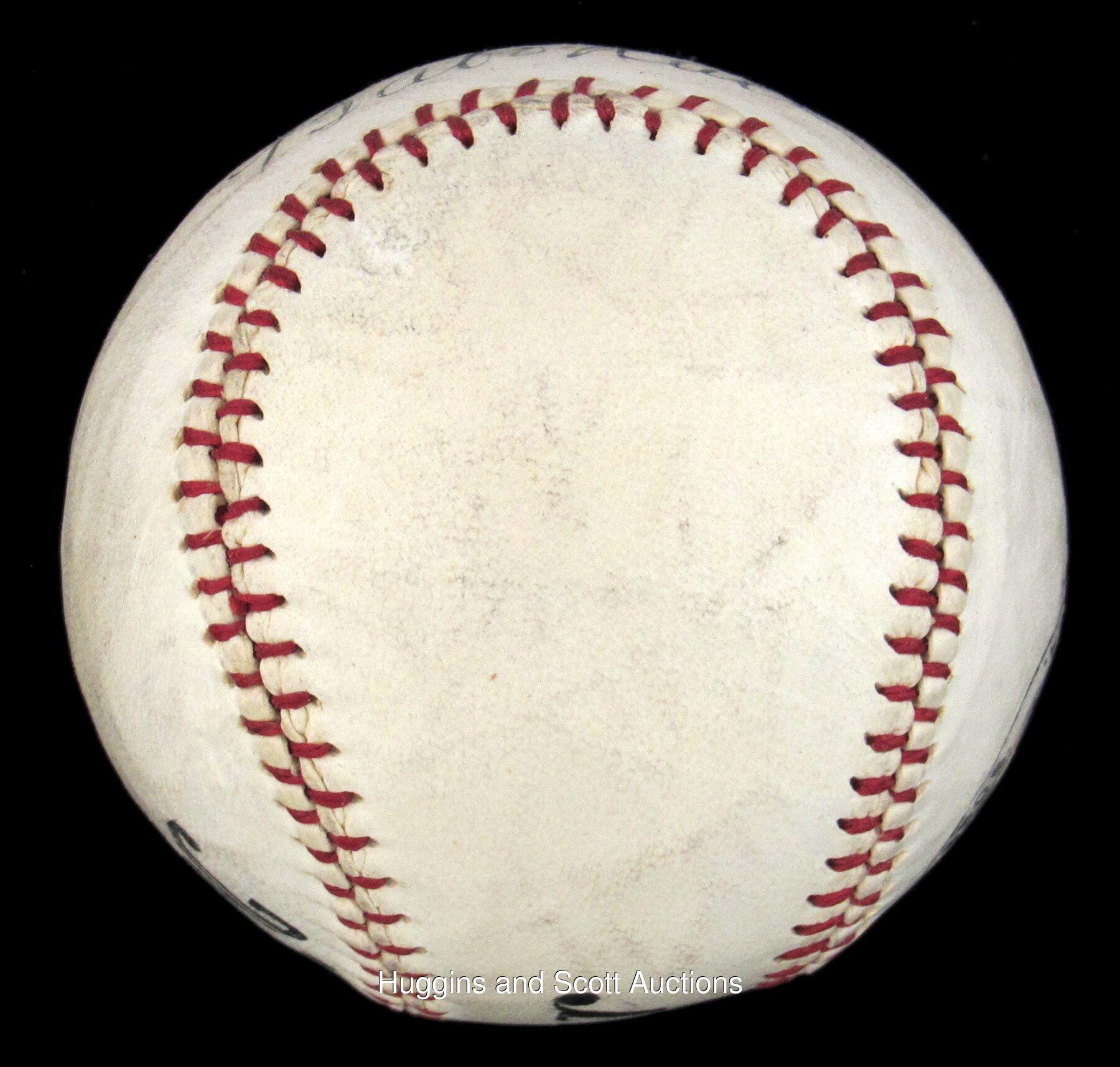 Every Ruth ball tells a story. This one"s story is, first, that it"s an upper mid-grade, borderline high-grade example with a minimally "7"-strength signature. All the hallmarks of Babe"s autograph artistry—from his bulbous "B" to the tall "b" to his looping "R" and crossed "th"—are here in spades. Not to mention that the elegant script is perfectly centered to boot. Next in our story comes the venerable manufacturer Spalding, whose "Star" model can often be traced to the iconic 1927 season, yet is likely later in this instance due to the absence of Ruth"s early-style quotation marks around "Babe." The lightly toned/scuffed ball concludes its story with the seldom-seen, mostly intact retail box, which remains bright and vibrant despite heavy wear throughout. As a point of reference on value, it"s worth noting that we sold a very similar quality Ruth ball way back in 2007 for over $40,000. Full LOA from JSA.