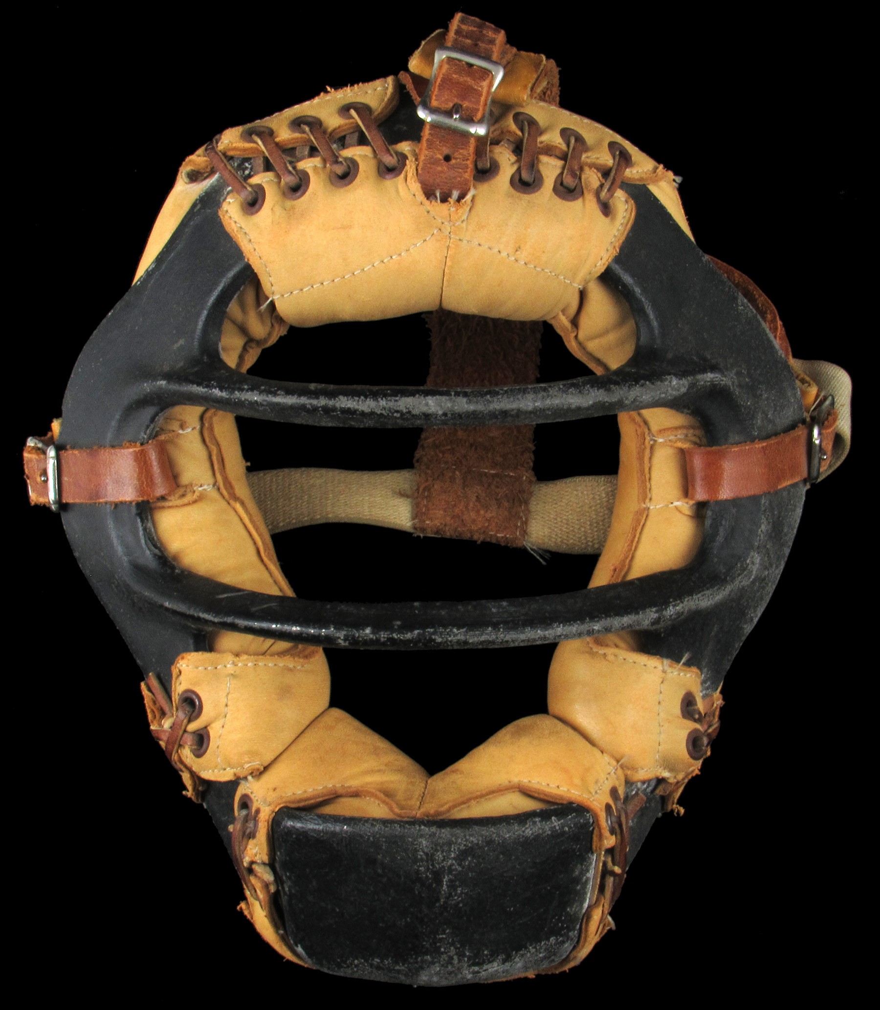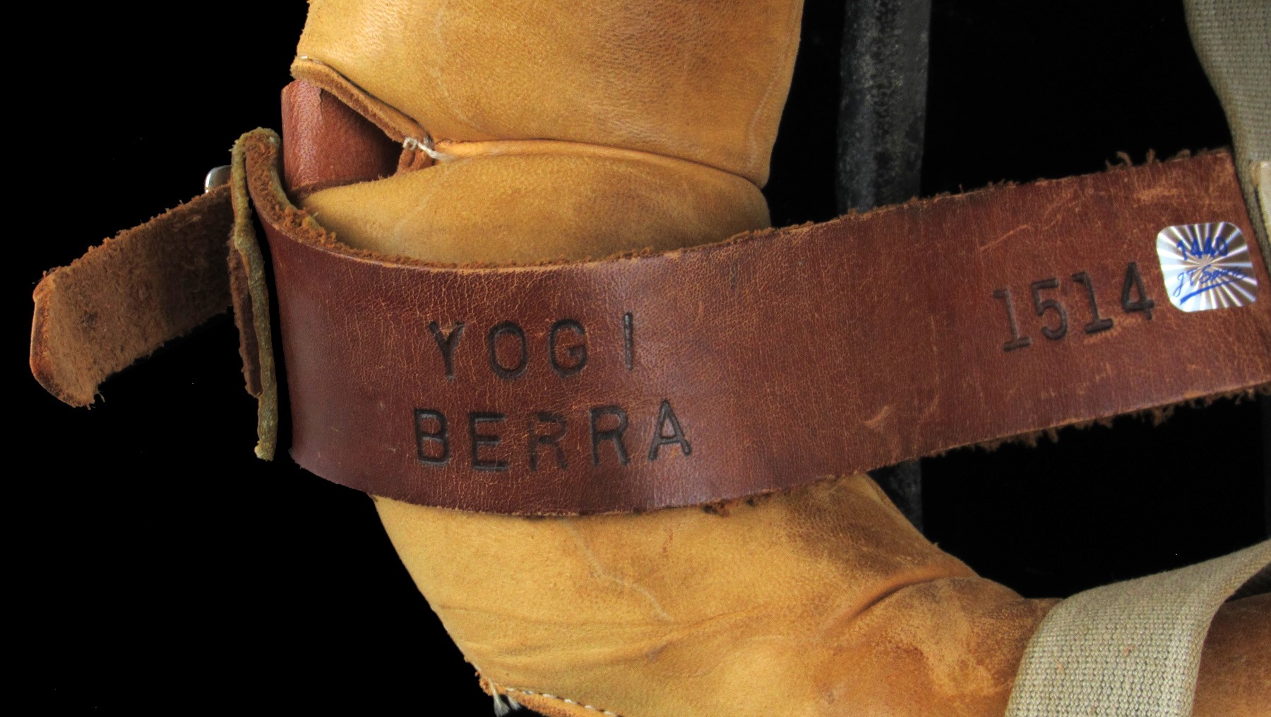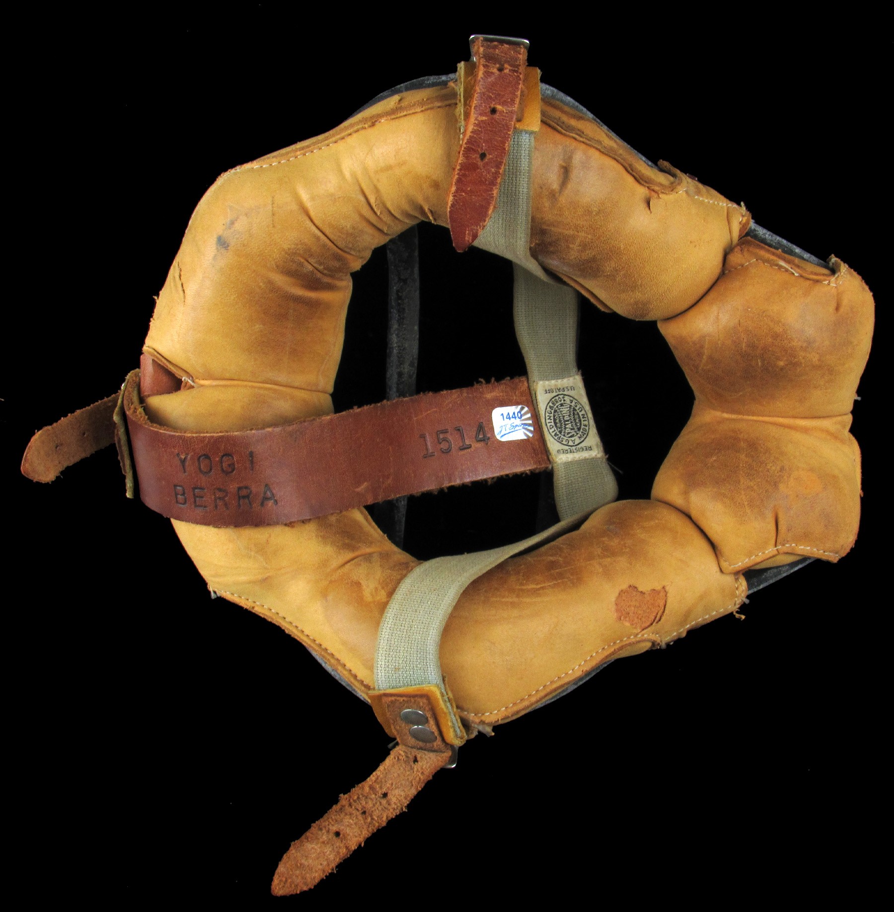 Throughout the history of Major League Baseball, few catchers have matched "Yogi" Berra in reliability and productivity. To say Berra's MLB resume is outstanding would be an understatement. Berra's 3 MVP awards, 18 All-Star Game selections, and 13 World Series championships attest to his greatness as both a player, and coach. Catch hold of a great piece of memorabilia, with this Berra game worn Spalding catcher's mask. An accompanying letter of provenance from the original longtime owner states this mask was given a to him by Berra, at a 1958 New York Yankees exhibition game in St. Petersburgh, when the proud recipient was 10 years old. As the elated youth aged, he kept this treasure safely in his possession for longer than most of us have been alive. Also accompanying is a certificate of authenticity which cites this Spalding model 1514 mask as having been made in 1955. The COA also notes an attached circa 1957 photo of Berra "wearing a mask that though not a photo match, is a confirmed model match". Berra's name is impressed into the surface of the leather head strap in block letters, and the same strap is also impressed with the model number. Excellent signs of authentic use/wear include paint erosion on the metal cage, and sweat staining on the face padding, which also has a 1" section of surface leather loss. The metal buckles all remain sturdy and serviceable, as do the moderately worn fastening straps, and all laces remain taut. COA from John Taube/J.T. Sports. Opening Bid $5,000.