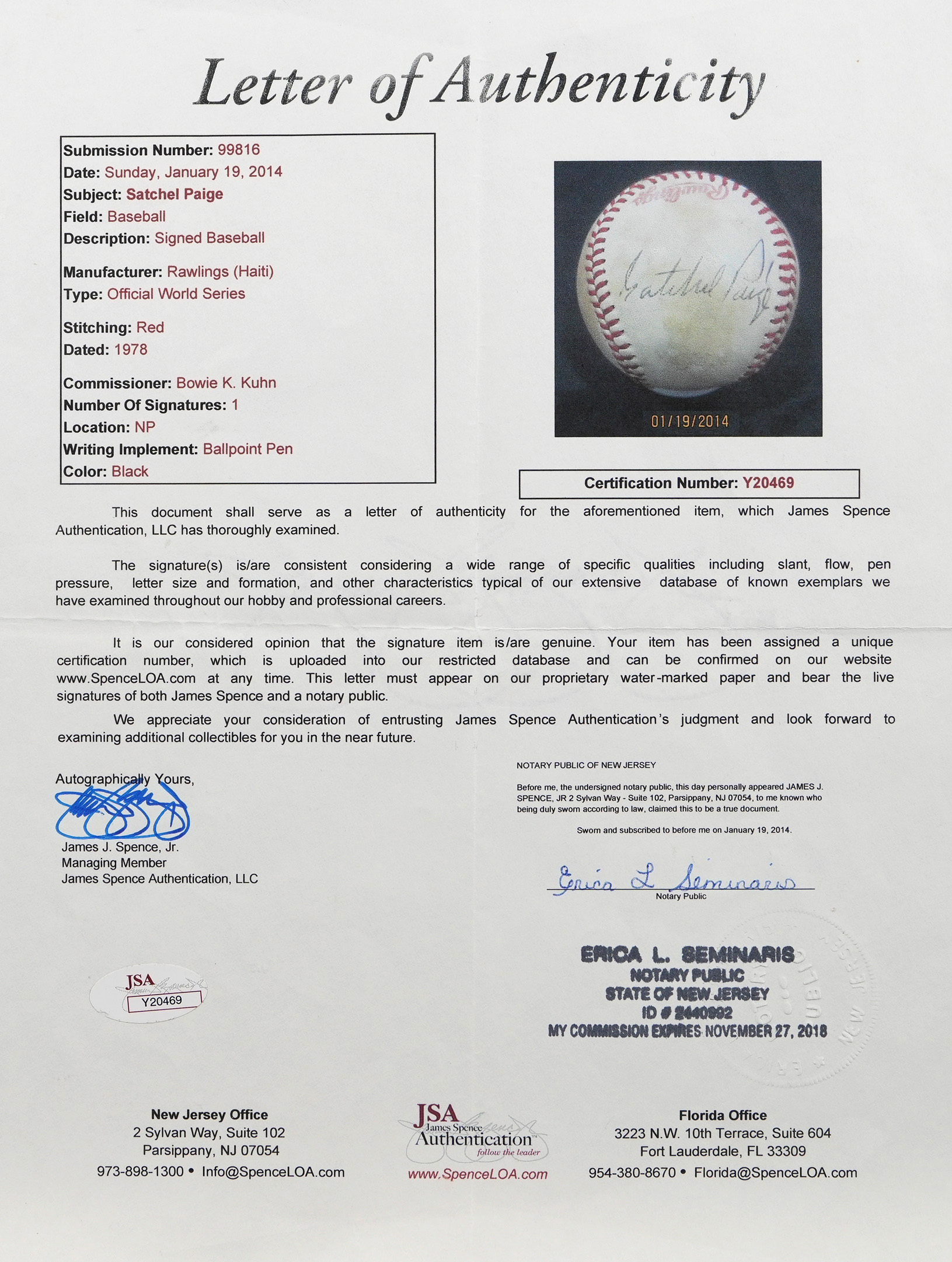 Full LOA from James Spence/JSA.