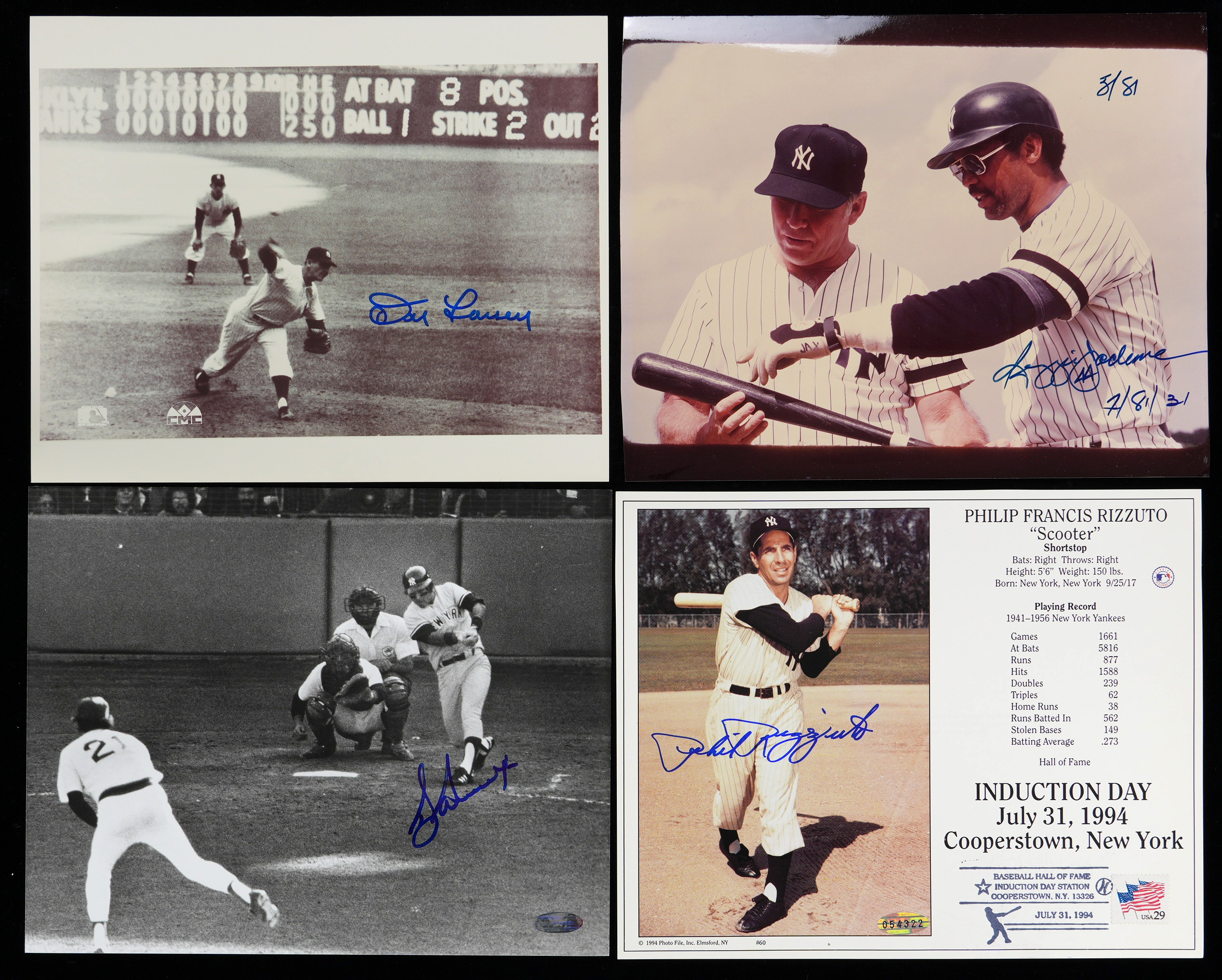 Joe DiMaggio (photo of last hit of his 56-game hitting streak), Lefty Gomez (“Best Wishes”), Bill Dickey, Frank Crosetti (“New York Yankees 1932-1968”), Ralph Houk, Tom Henrich, Don Larsen, Goose Gossage.