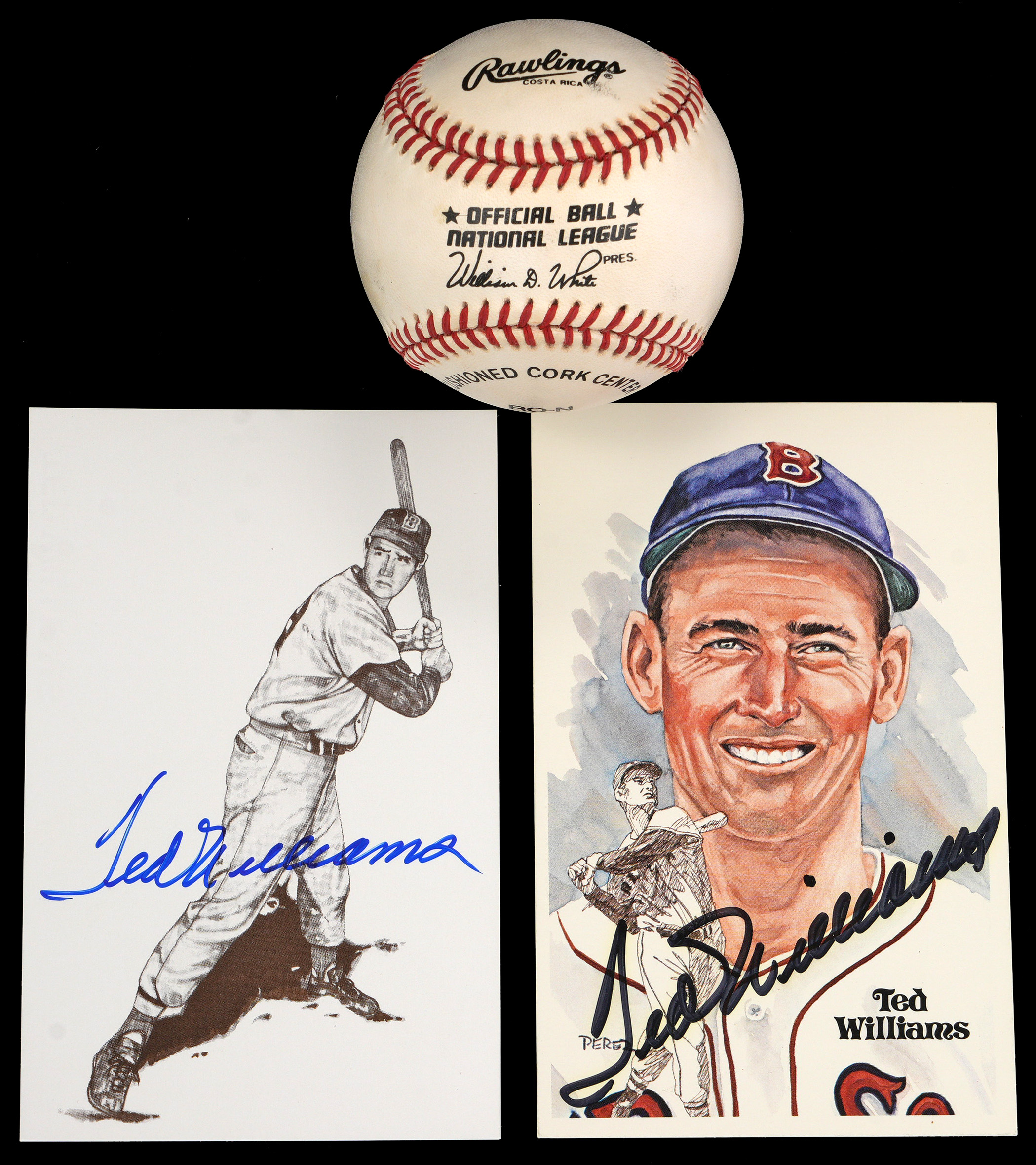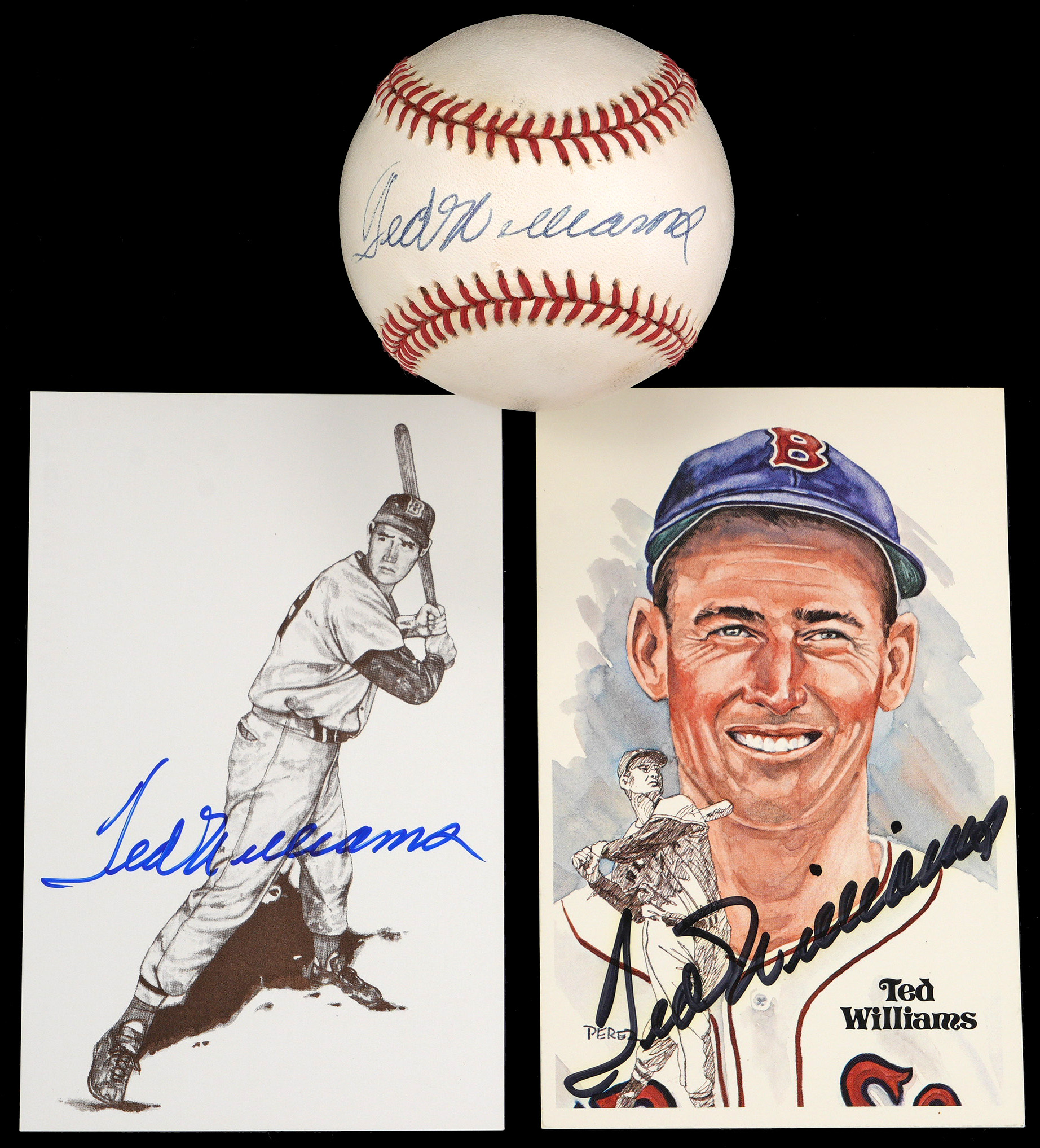 This lot includes (3) items with big bold signatures averaging (“8-9”) by “The Splendid Splinter.”