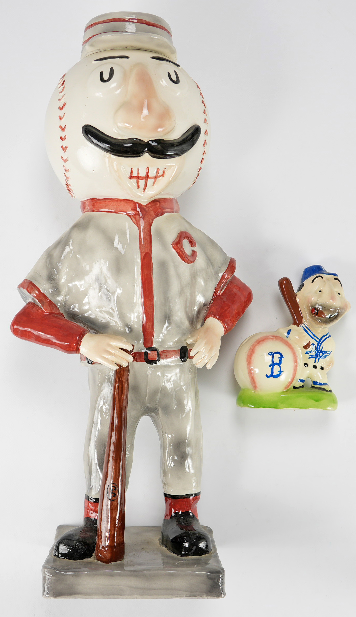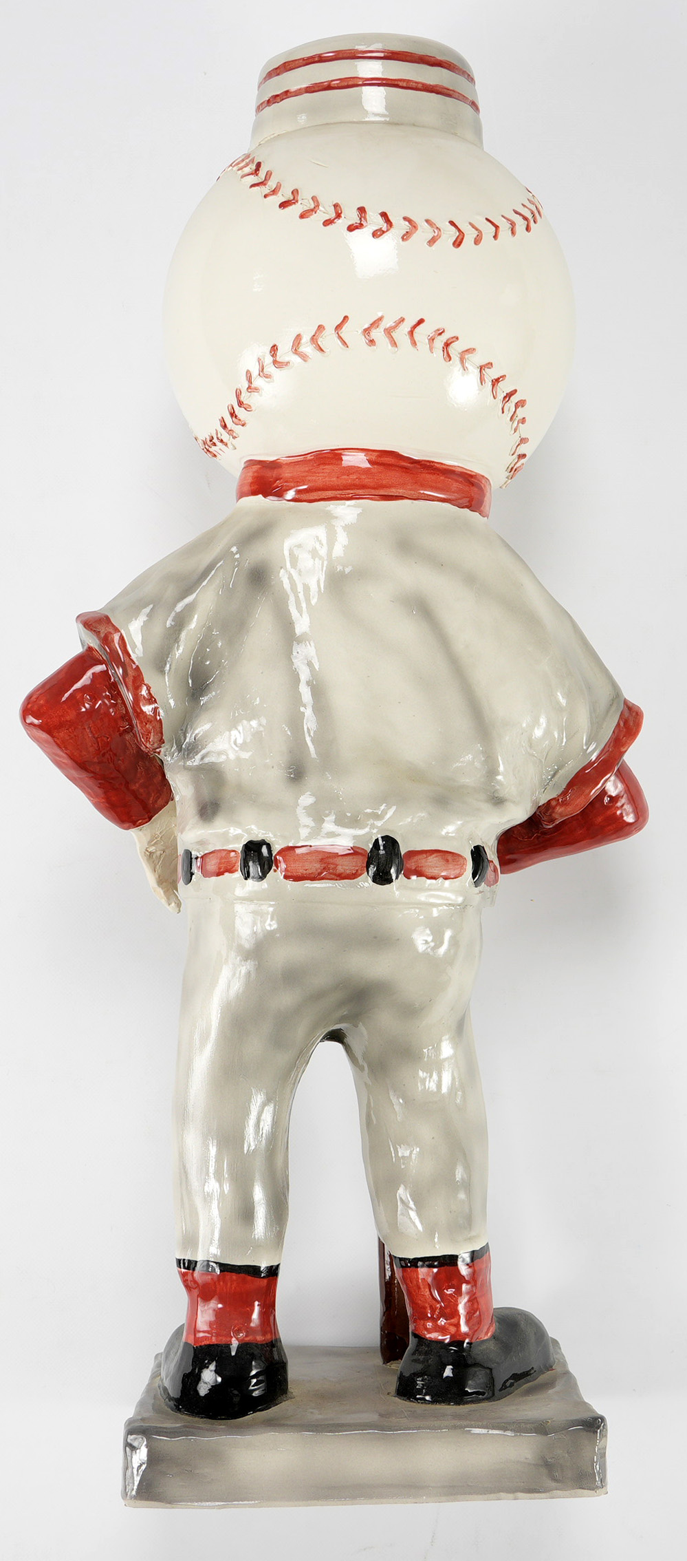 Given this fragile, visually commanding colossus is approximately 75 years old, it stands as a model of preservation, testifying to the care of any previous owners. Intended for point-of-sale promotion of Gibbs-Conner’s standard size banks and toothpick holders, 25” statues such as this have survived in very small numbers. We have only ever discovered just one or two examples for any given team, so you can safely regard this oversized icon as being exceptionally rare.