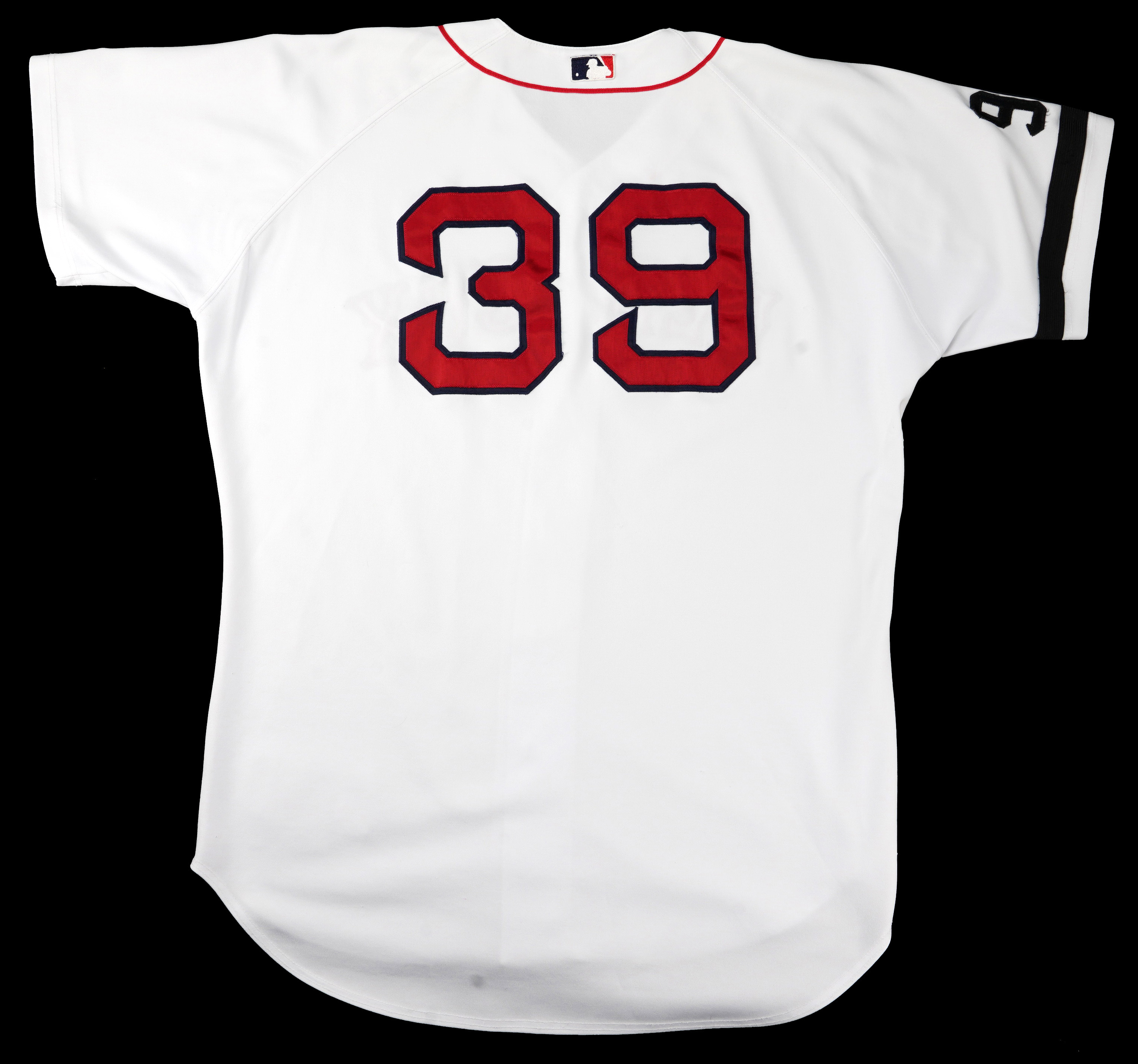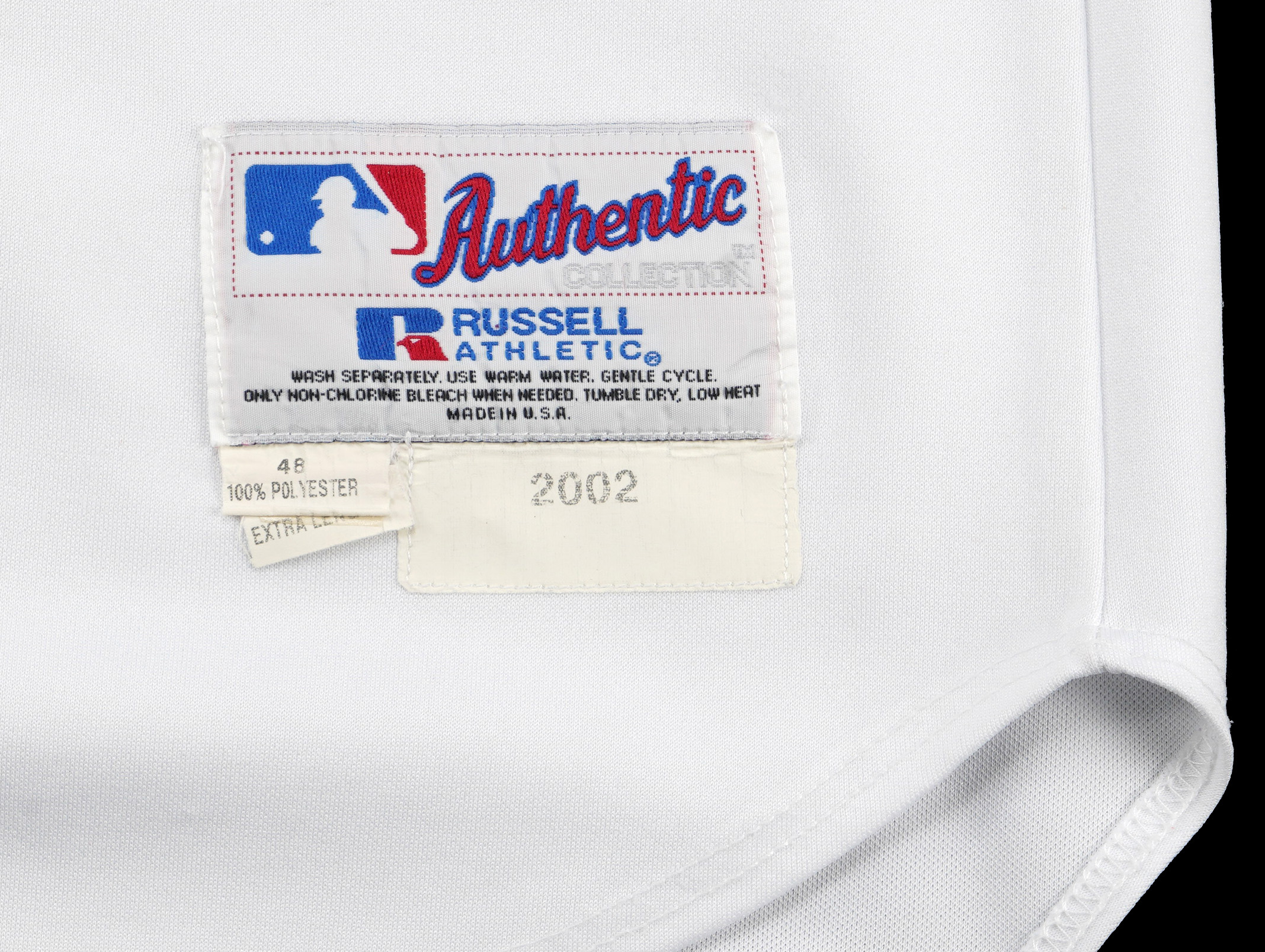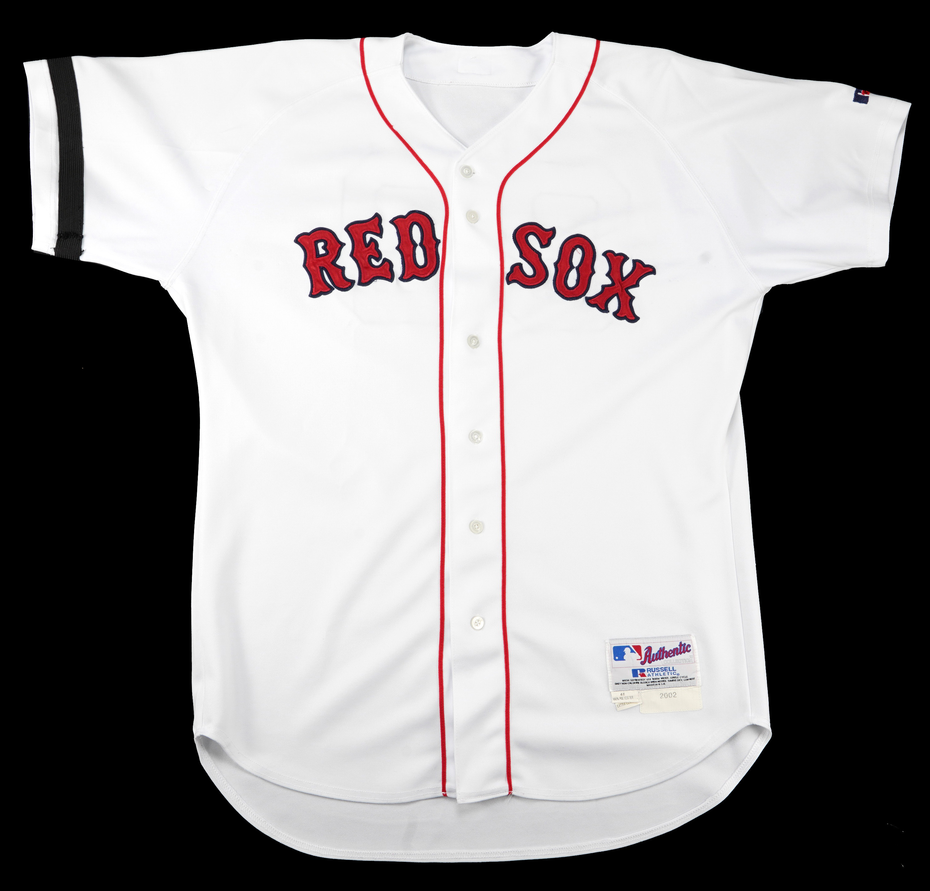 This 2002 Boston Red Sox game-used jersey comes directly from the collection/estate of infielder, Mike Cubbage. He played for three teams during his career and was the third base coach for the Red Sox in 2002. The MLB Authentic Russell Athletic size 48 jersey has the number “39” on the back, and a black number “9” patch on the right shoulder in honor of Red Sox immortal, Ted Williams, who died on July 5th of that year. Shows very few signs of use.