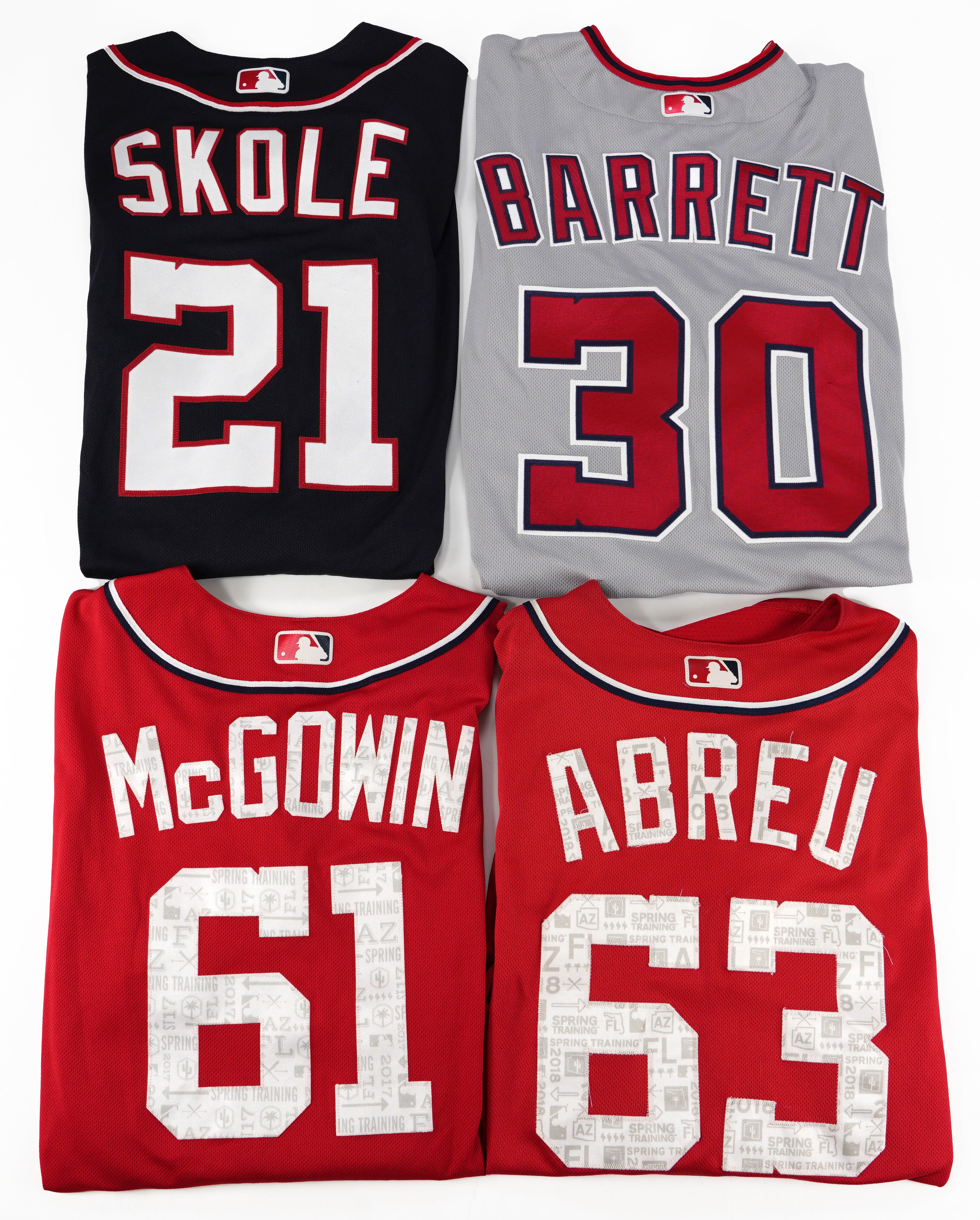 Game-Used or Game-Ready these (4) Authentic Majestic Washington Nationals jerseys show little or no actual use.