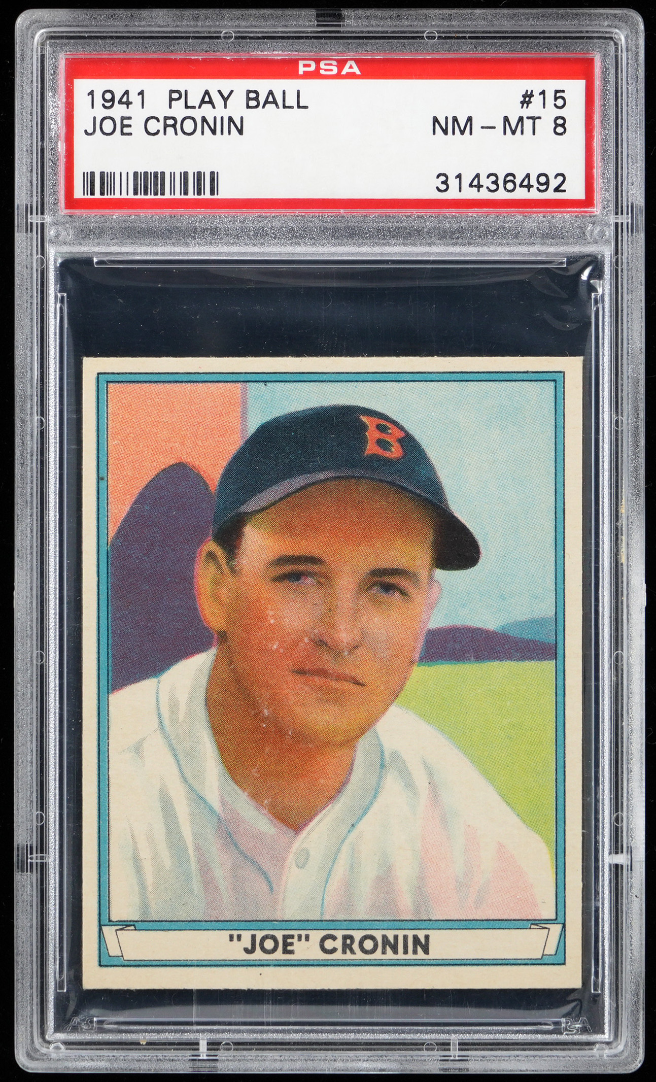 Graded EX 5 by PSA. Boston Red Sox Hall of Famer Joe Cronin. This high-end portrait of the future American League president ranks in the upper 7% of all similar copies evaluated by the grading service with 5 higher. Part of a 1941 Play Ball PSA graded near set break available throughout this auction.