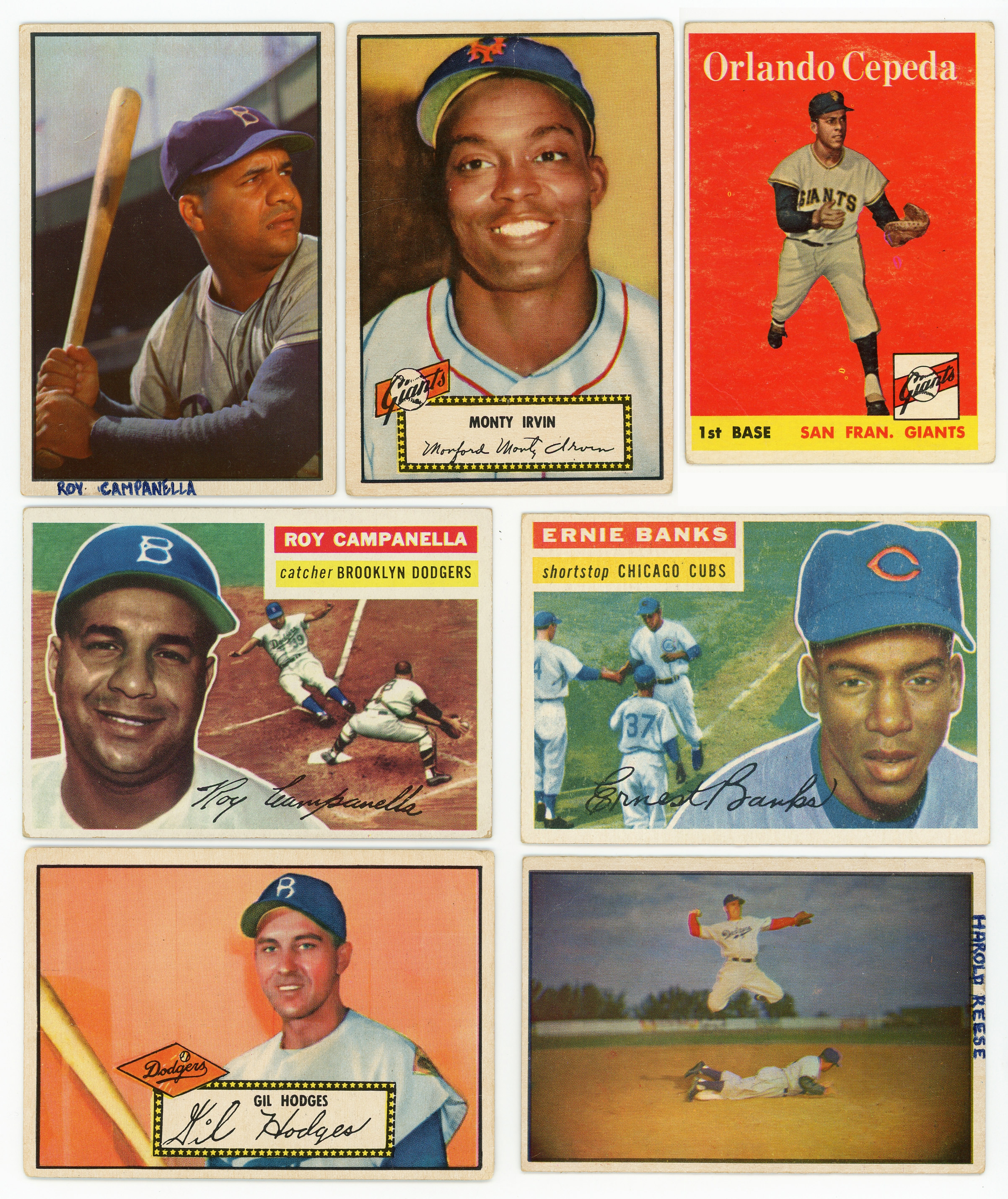 1953 Bowman Color: (15 cards, 53% average GD to VG, 47% FR or lesser due to reverse writing) with #21 Garagiola (FR, writing), #33 Reese (FR, writing), #36 Minoso (FR, writing), #46 Campanella (FR, writing), #51 Irvin (EX), #80 Kiner (FR, writing), #81 Slaughter (FR, writing);