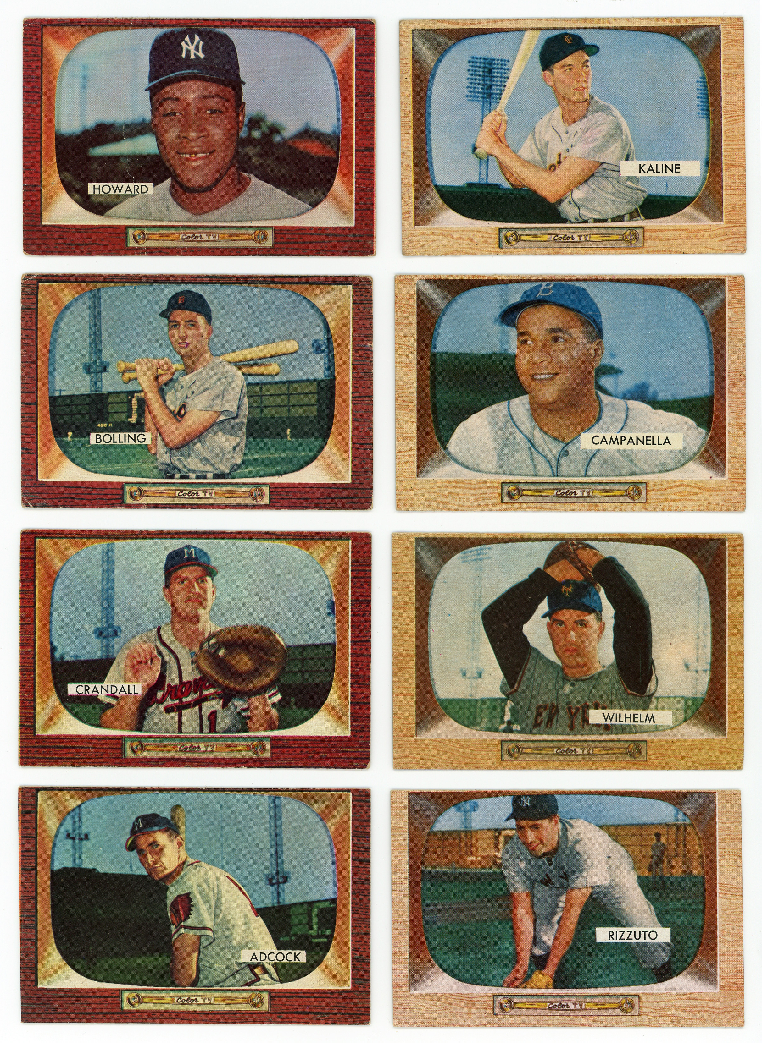 Tune into the offered 1955 Bowman partial set of (212/320) cards featuring multiple Hall of Famers and stars along with (41) tougher high numbers (average GD). This condition sensitive wood bordered edition averages (VG) condition with some better or lesser. Keys include: #1 Wilhelm (VG), #10 Rizzuto (VG), #22 Campanella (VG), #23 Kaline (VG), #68 E. Howard RC (FR) and #204 F. Bolling (GD, F. Bolling back).