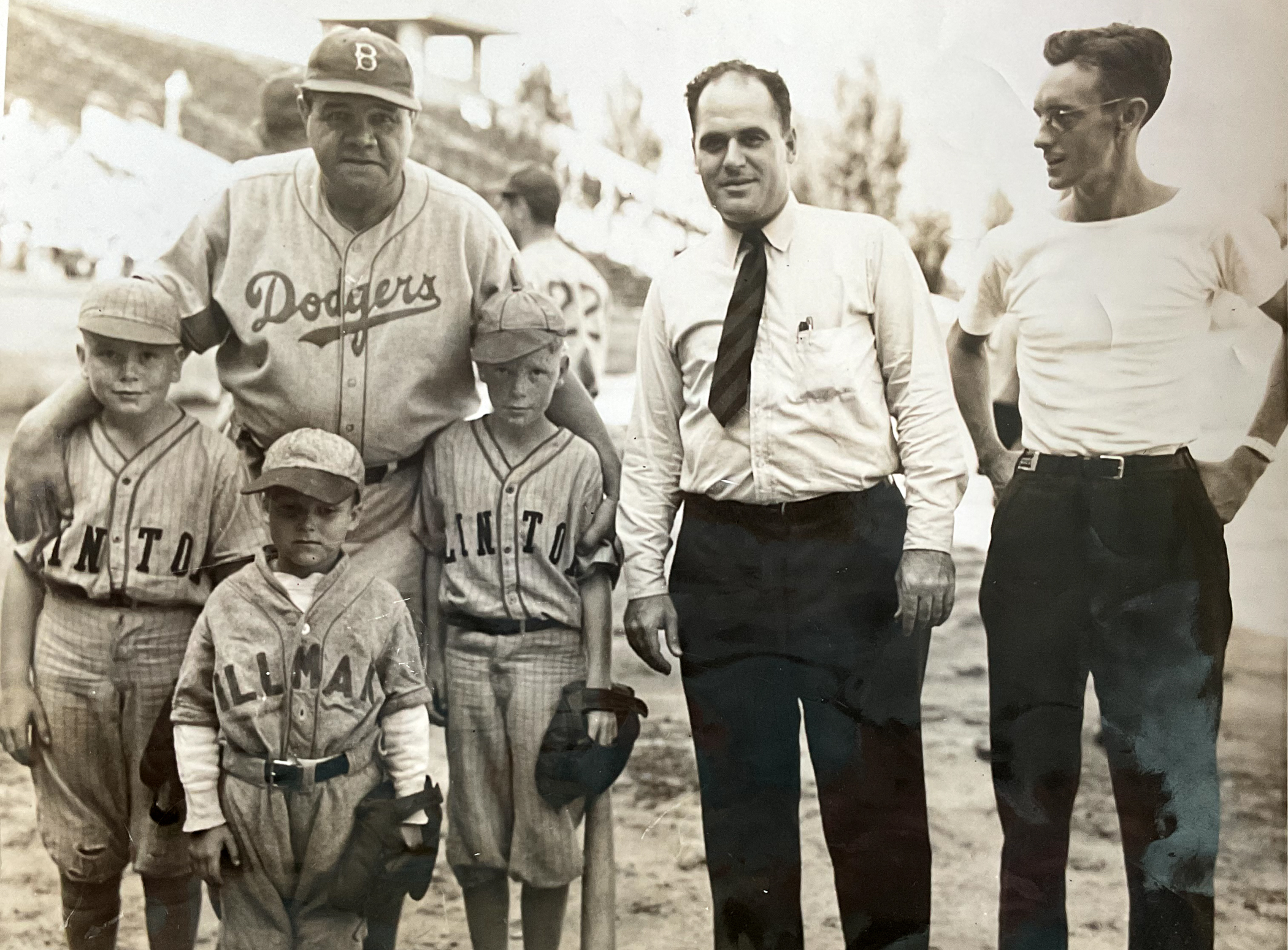 Seen below is a photograph of this baseball's original owner, with Ruth in his 1938 Brooklyn Dodgers uniform. Ruth took a coaching job with the Dodgers in hopes of becoming a manager, though the Dodgers had no intention of offering him the job, employing him only to boost ticket sales. This photograph is presented for context only and is not included in the sale of this prized Ruth autograph.