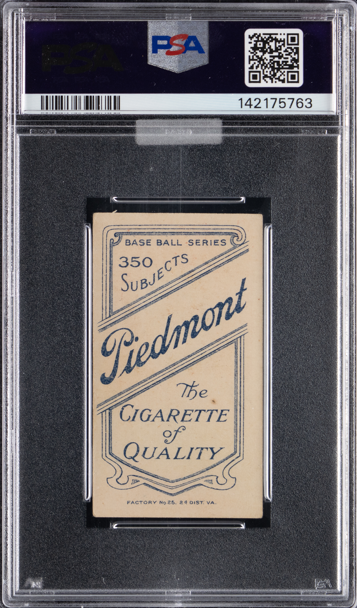 Graded VG-EX 4 by PSA. Although 1909-1911 T206 White Border Ty Cobb "Red Portrait" poses aren't exactly difficult to find, perpetual demand overwhelms supply for the "Georgia Peach." The offered heirloom of the Detroit Tigers Hall of Famer is well centered with evenly touched corners, creamy edges and focused surface registration. A very slight diamond cut is visible only upon close inspection. The Piedmont 350 Subjects advertising back is crystal clear with bold advertising text. A standout Cobb that presents at the apex of its overall evaluation! Awarded an MBA Gold Diamond by Mike Baker Authenticated for high-end eye appeal. A corresponding MBA sticker is affixed to the front of the holder.